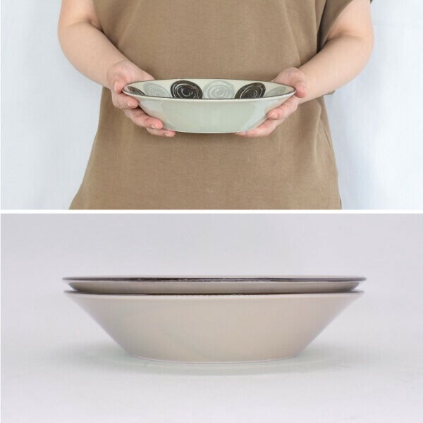 以簡約黑白設計,將華麗線條轉化為柔和低調的餐桌美感。深口造型方便盛裝各式料理,無論義大利麵、燉飯或湯品都能輕鬆駕馭。一盤多用,簡約中展現細膩美感,為日常餐桌增添品味與便利。