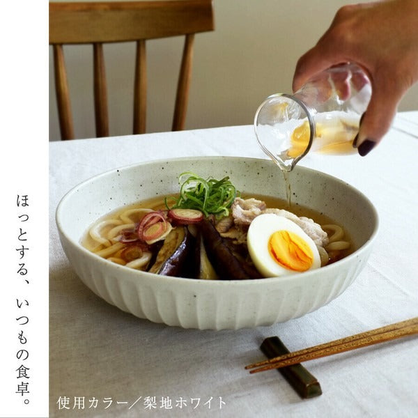 Featuring delicate carved patterns, the Sogi Nashiji Bowl embodies the simple elegance of Japanese tableware. Its smooth, refined texture creates a calm and comforting atmosphere. The large size is perfect for serving dishes like curry rice or chilled noodles. Each piece is crafted with care in Japan’s renowned Mino ware tradition, blending practicality and beauty to bring a gentle sense of warmth and style to everyday dining.