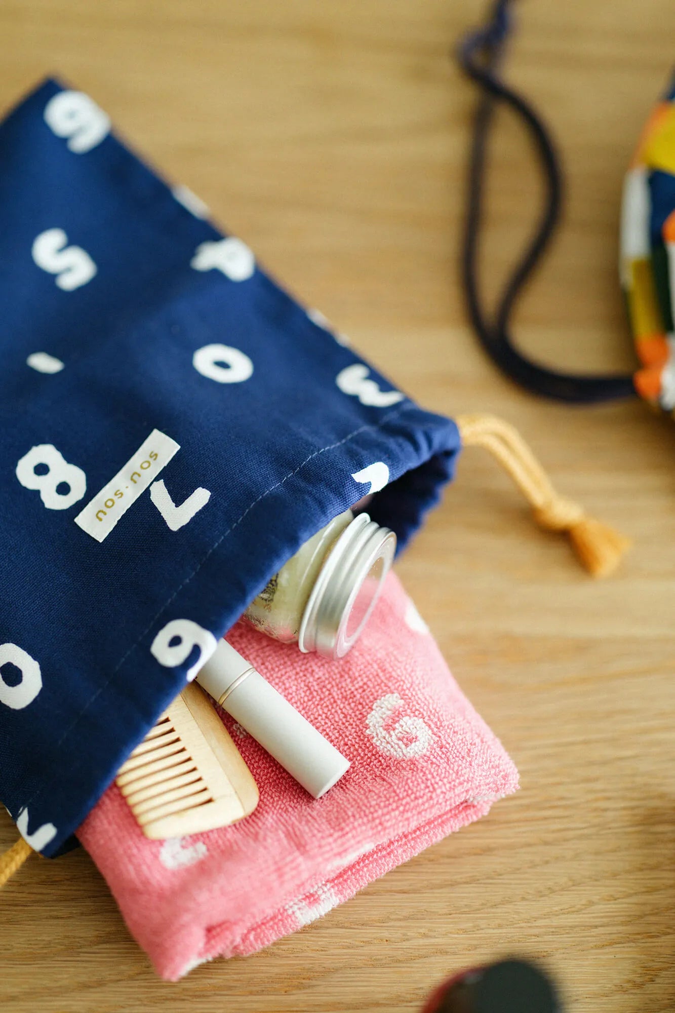 Created in collaboration between Kyoto’s popular brand SOU・SOU and Imabari towel maker Marushin, this pouch is compact yet highly practical. Perfect for storing cosmetics, earphones, or other small essentials, it slips easily into your bag without taking up space. With a simple yet charming design, it comes in four playful patterns. The colorful prints are versatile and uplifting, adding a touch of joy and style to your everyday life.