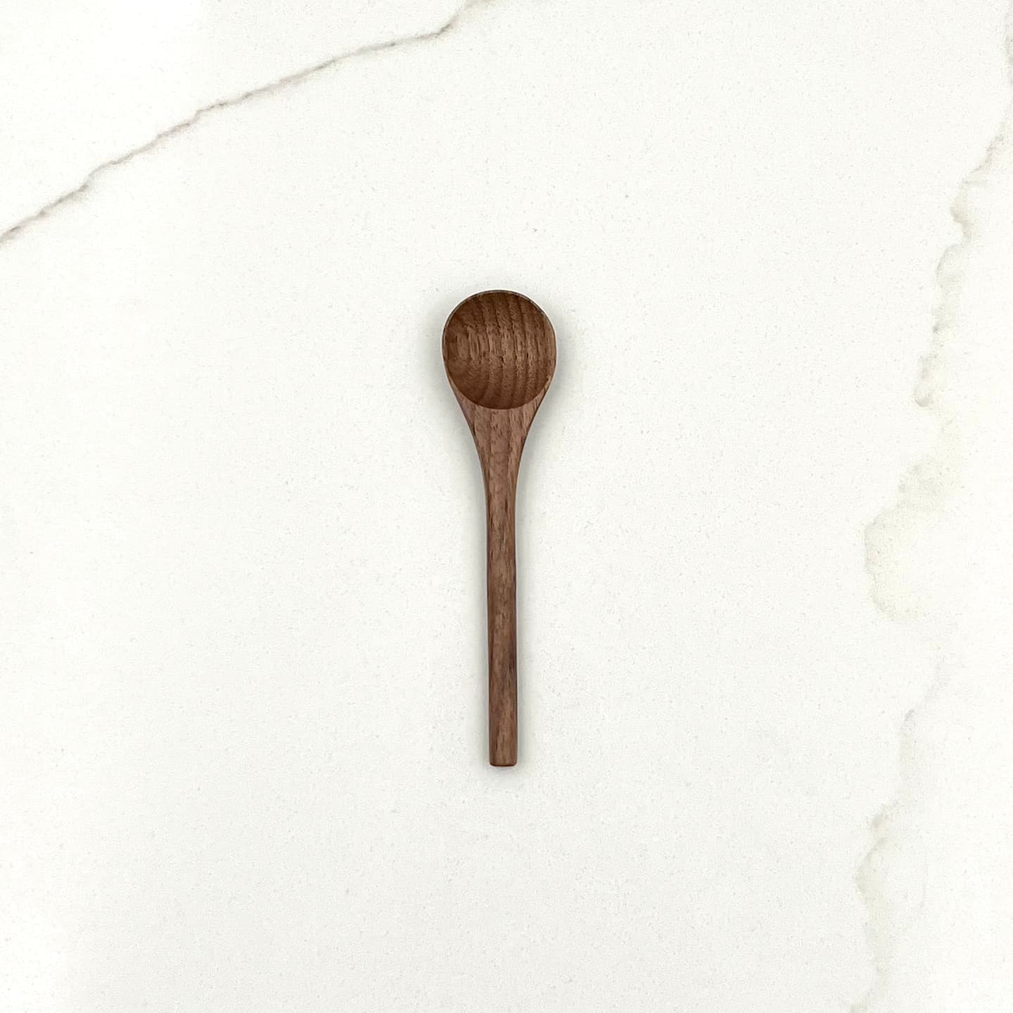 Voted one of the cutest utensils, this tiny spoon is both practical and full of charm! Its size is perfect for everyday use with a salt jar or for elegantly serving condiments at gatherings. Handcrafted from a single piece of sustainably sourced American walnut, it is durable and easy to use. Combining beauty and functionality, this petite utensil adds a touch of refinement and natural charm to any table setting.