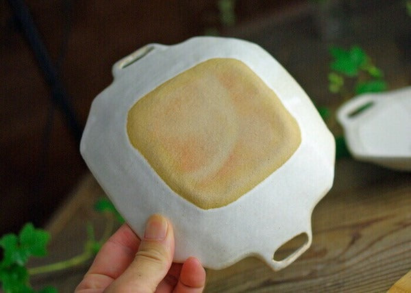 Crafted with care in Japan's renowned Mashiko pottery tradition, this charming octagonal plate features a minimalist handle and a warm, earthy texture. The simple yet elegant design highlights the natural beauty of handmade ceramics. Its practical size makes it perfect for serving salads, fruits, or desserts—adding a touch of rustic sophistication to your everyday table setting.