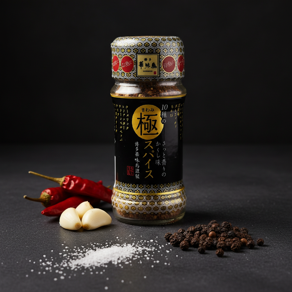 -成分:鹽(日本國內生產)、芝麻、胡椒、醬油(包括小麥和大豆)、紅柿子椒、大蒜、炸大蒜