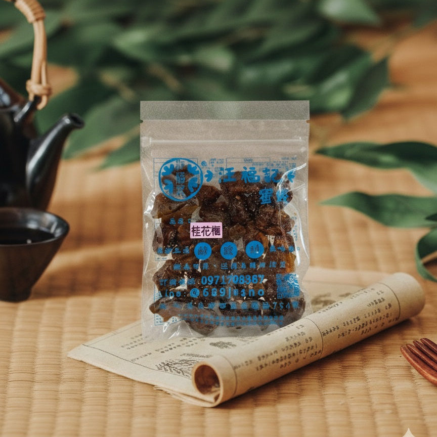 來自嘉義老字號的汪福記,承襲了數十年的傳統醃製工藝。每一顆蜜餞都經過嚴格篩選與自然熟成,不僅是台灣在地人從小到大的零嘴記憶,更是將簡單的果實,透過甘草、糖與時間的洗禮,轉化成層次豐富的舌尖饗宴。無論是經典的二代甘宋梅還是肉質厚實的化核應子,每一口都是最道地的台灣情懷。