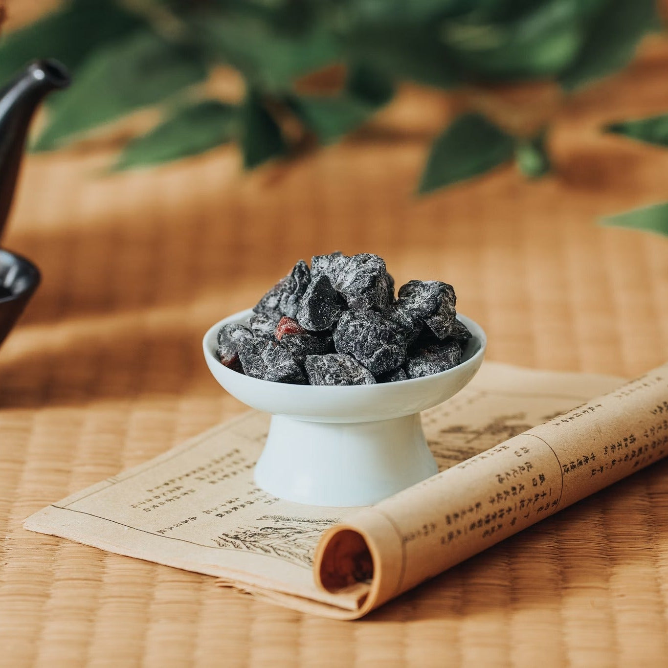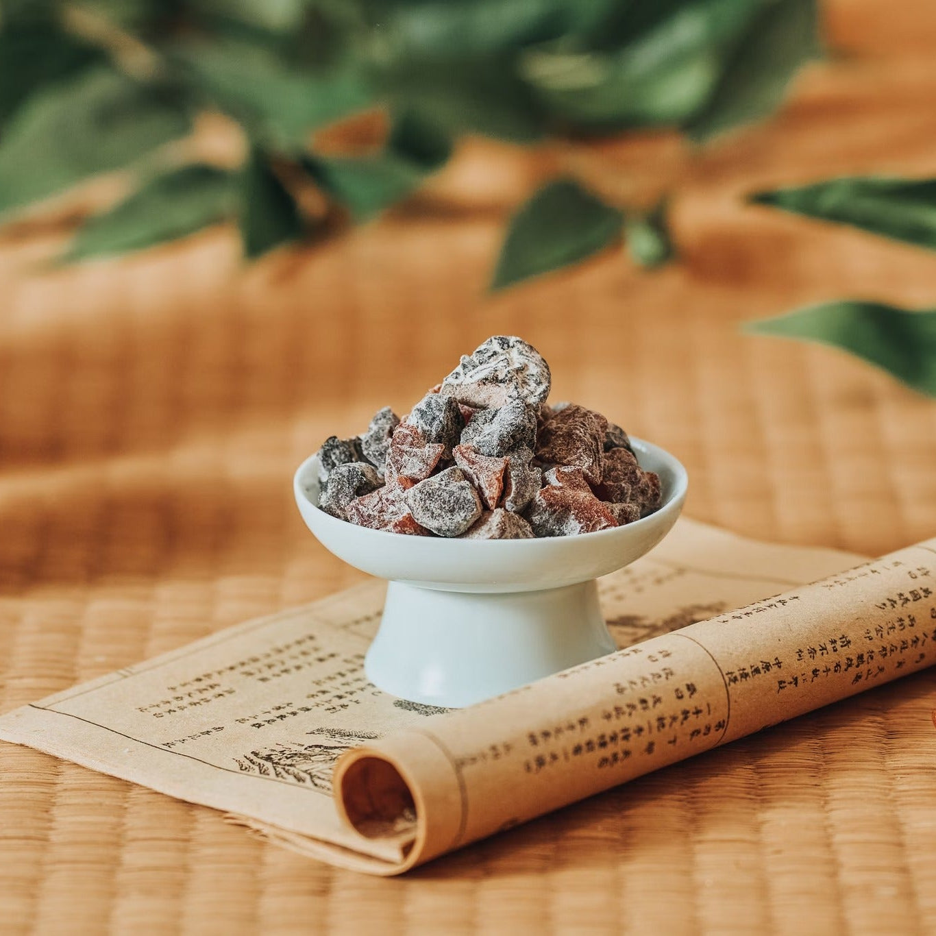 - 部分產品表面若有白色粉末,為甘草粉或糖粉析出之正常現象,請安心食用
