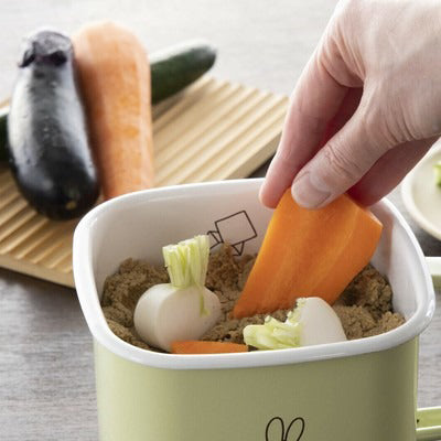 Featuring Miffy as the theme, this jar is decorated with adorable illustrations inside and out, telling a charming little story. Sized to perfectly fit a standard 750g miso pack, it comes with a sealed lid to prevent drying and oxidation, keeping contents fresh for longer. The large handle makes it easy to carry, and the enamel material resists odors and stains. Beyond miso, it’s ideal for storing various ingredients. Available in four fresh and sweet pastel colors, it adds a touch of warmth and cheer to any kitchen.
