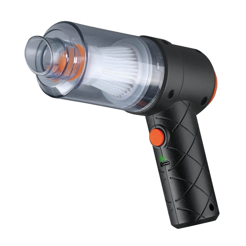 A lightweight, cordless vacuum designed for both home and car use. Equipped with three versatile nozzles—flat, brush, and round—it easily cleans seats, keyboards, air vents, and other narrow spaces. The wireless charging design eliminates tangled cords, while the washable filter makes it eco-friendly and convenient. Built-in overcharge protection ensures safety and durability, delivering an efficient and effortless cleaning experience.