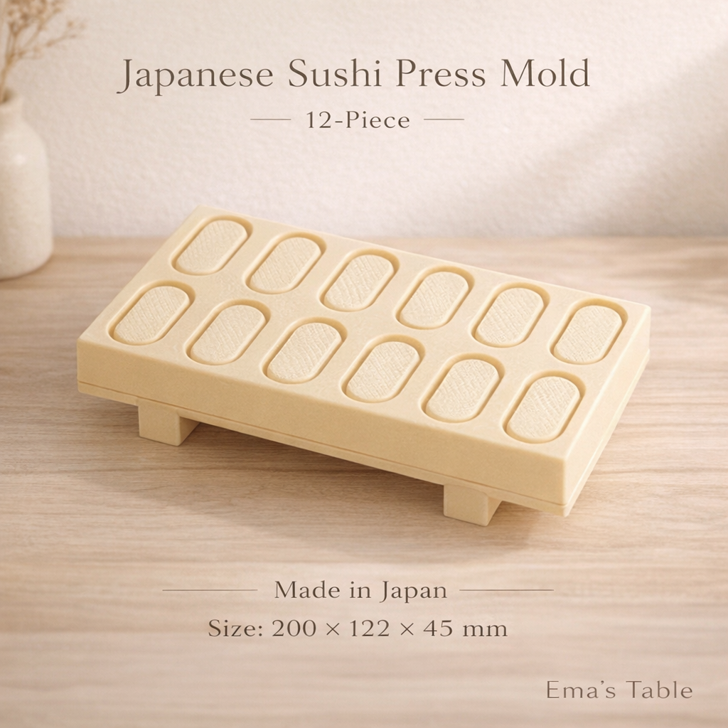 This Japanese-made sushi press mold allows you to form 12 sushi rice bases at once. Each piece comes out uniform and clean, making your homemade sushi look neat and restaurant-worthy. Simply press, release, and top with your favorite ingredients. Perfect for family cooking, gatherings, or anytime you want to enjoy sushi with ease.