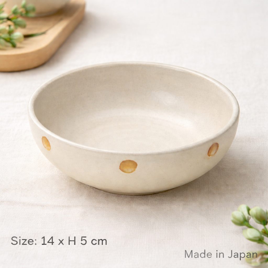 As if tiny droplets of water have gently landed on the rim, this Mino-yaki bowl is adorned with hand-painted, water-drop–inspired motifs that feel lively and charming. The design blends a classic Japanese aesthetic with a subtle modern touch—soft, playful, and timeless all at once.