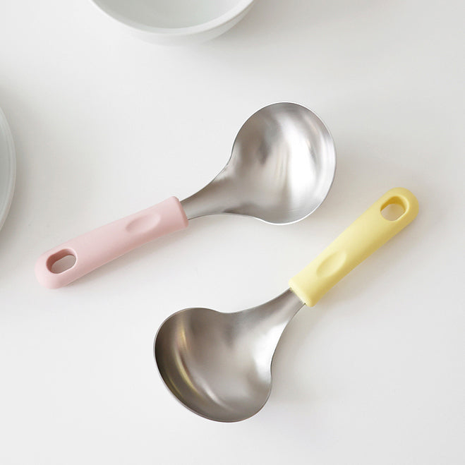 Add a splash of color and functionality to your kitchen with this adorable serving spoon! Available in six soft pastel shades, it features a non-slip silicone handle for a comfortable and secure grip. The durable mini stainless steel scoop is perfect for serving soup, sauces, or desserts—making every cooking moment more effortless and enjoyable. Whether for everyday use or as a thoughtful gift, it's the perfect blend of style and practicality!