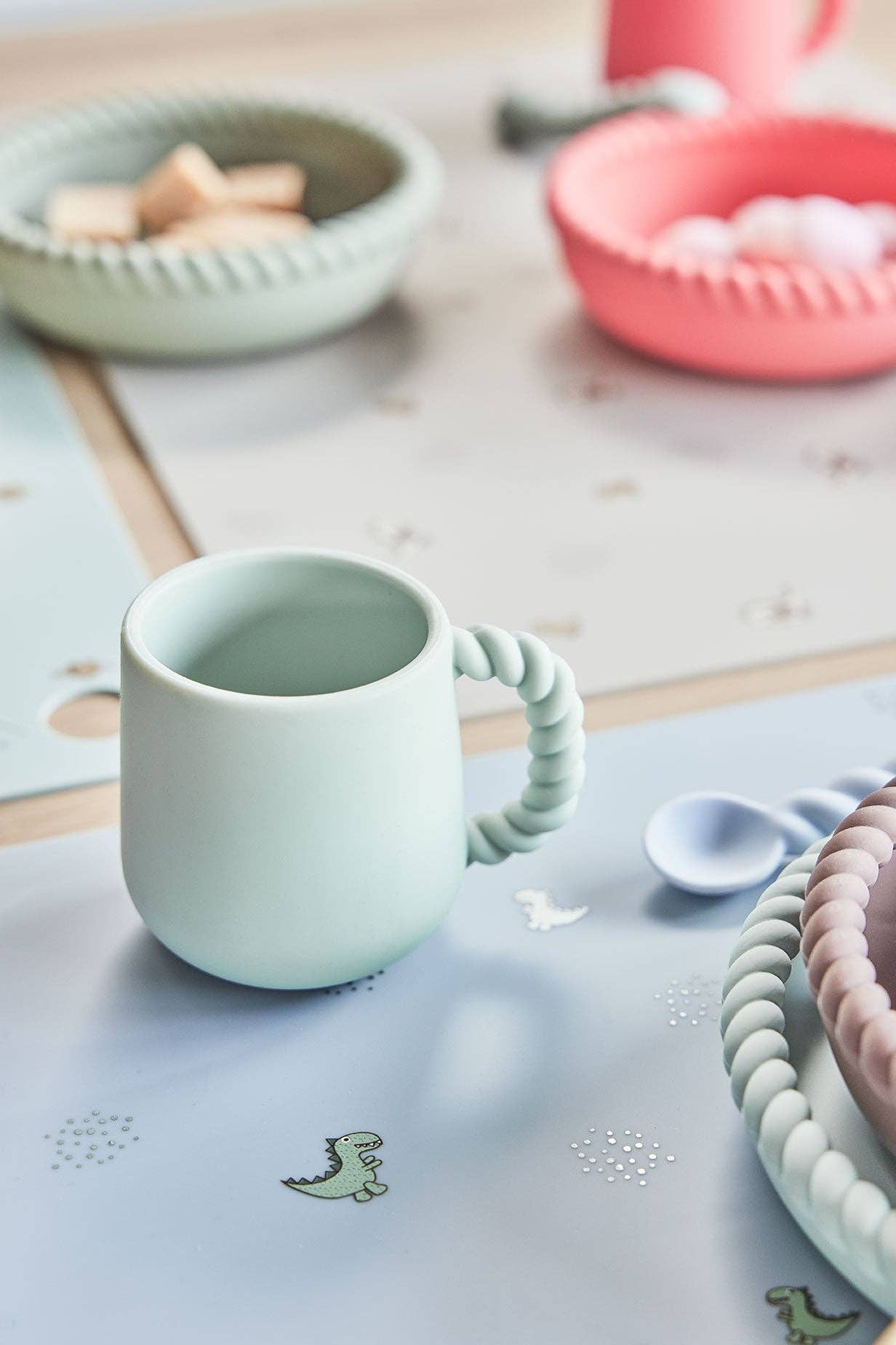 專為小小恐龍迷打造的可愛餐墊,採用 100% 食品級矽膠製成,柔軟安全、好清洗,大尺寸設計,可輕鬆容納餐具與杯子,還能防止食物灑落,陪伴孩子快樂用餐、激發想像力,是爸媽不可或缺的實用好物!