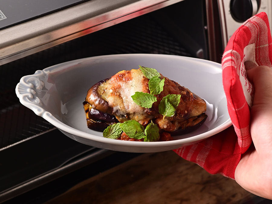 靈感來自古典歐洲建築常見的「莨苕葉」裝飾,將優雅與實用結合於一體,淺盤設計讓料理受熱均勻,適合烤焗小份菜餚,也可作為主菜盛盤使用。共有 3 款沉穩色與 2 款粉嫩特殊色,帶手柄的造型方便取放,無論烤焗料理或甜點製作都適合,提升餐桌的視覺與用餐樂趣。