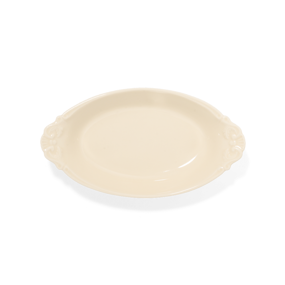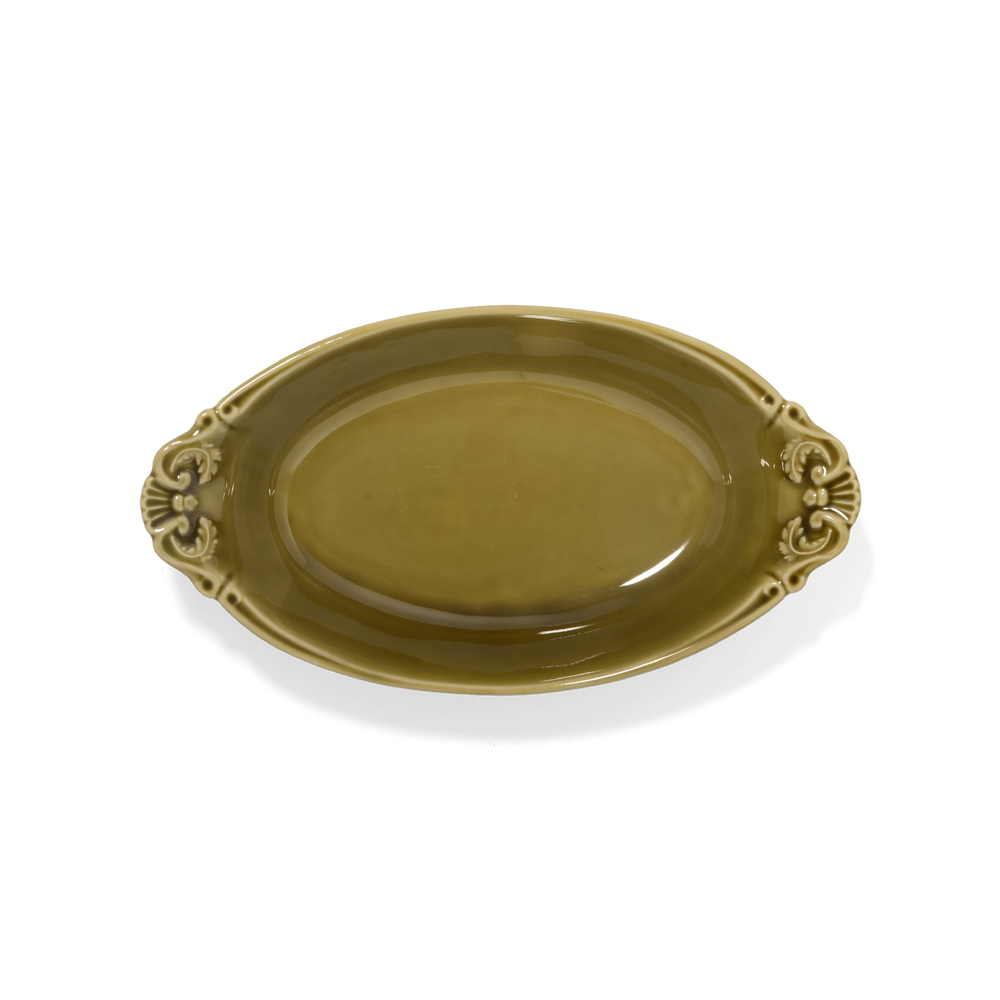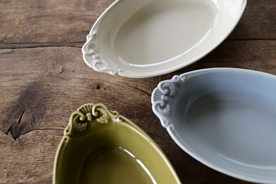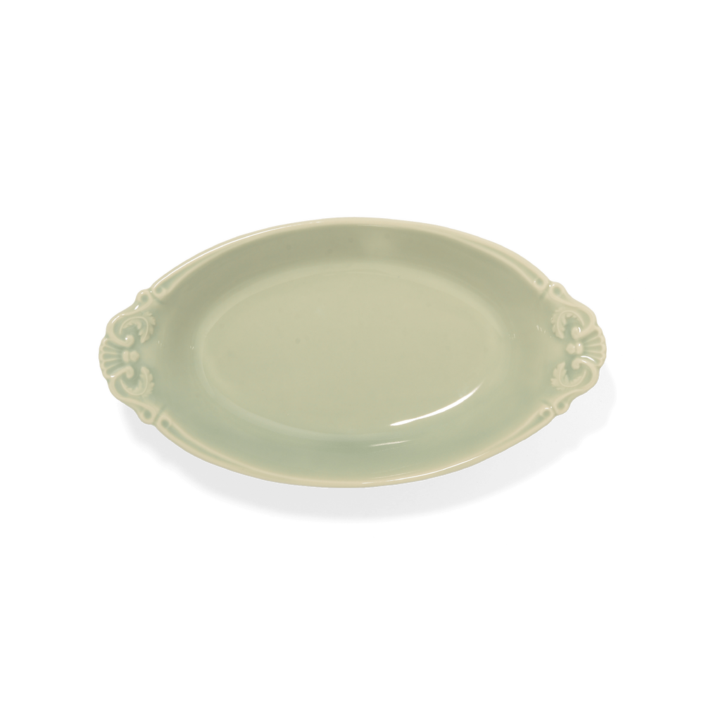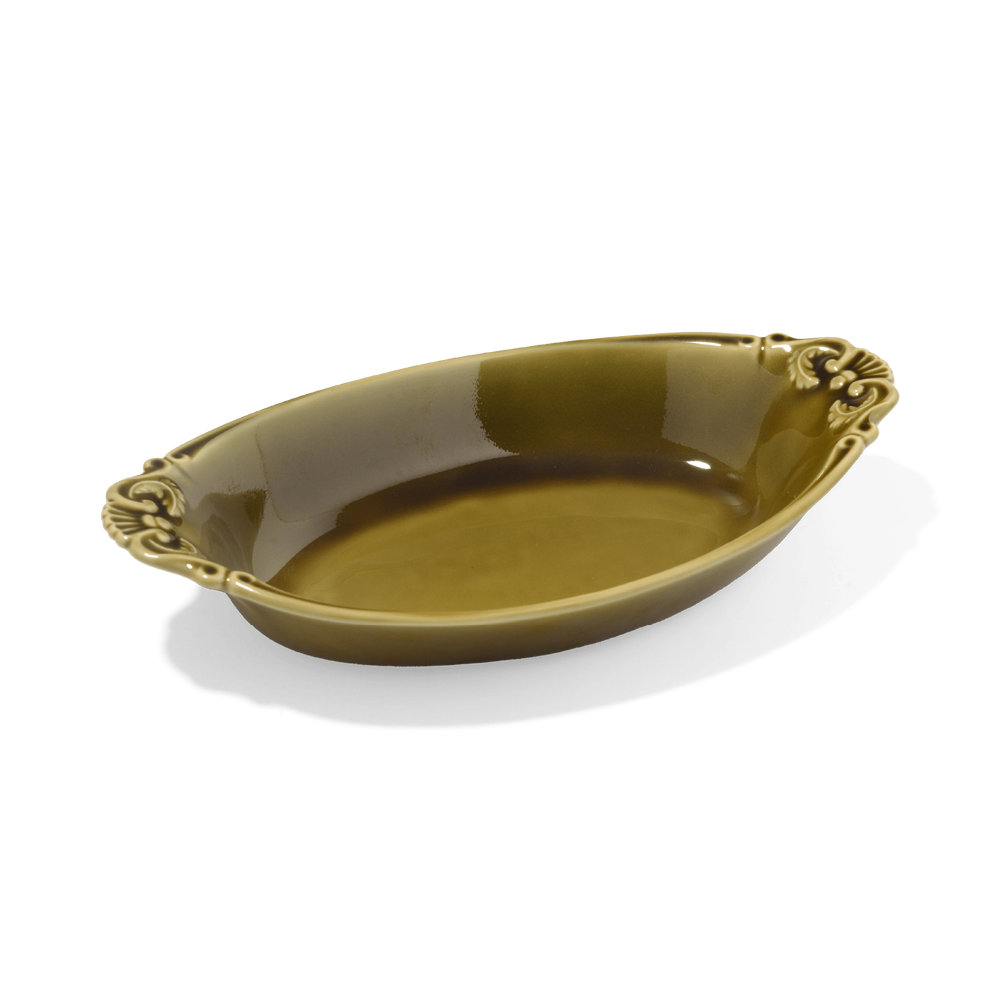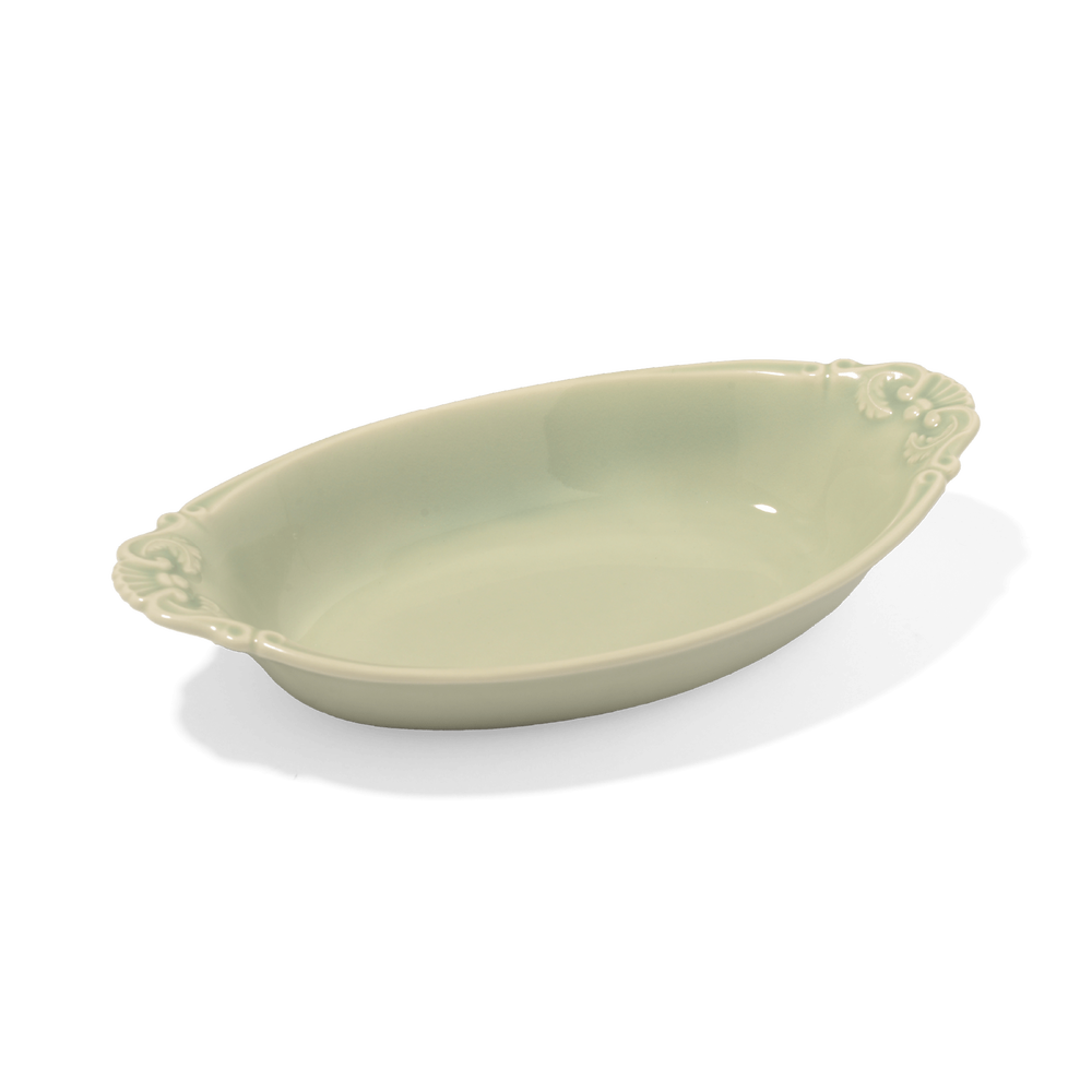 Inspired by the classic Acanthus leaf motifs commonly seen in European architecture, this baking dish combines elegance with practicality. Its shallow design ensures even cooking, making it perfect for small baked dishes or serving main courses. Available in three muted tones and two soft pastel shades, the dish features handles for easy handling. Ideal for both savory oven-baked dishes and desserts, it enhances the visual appeal of your table while adding joy to every meal.
