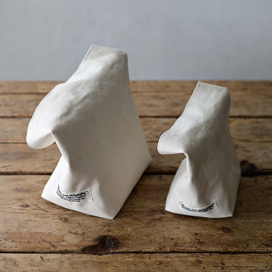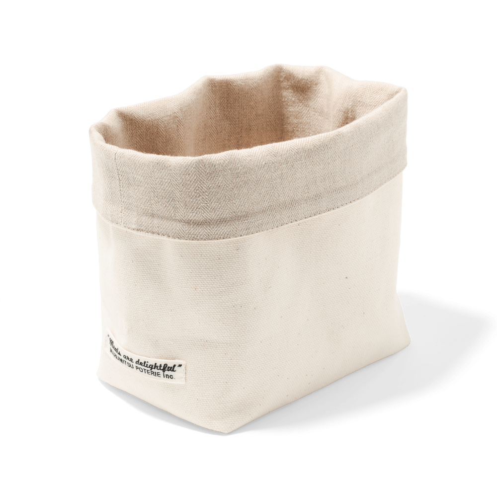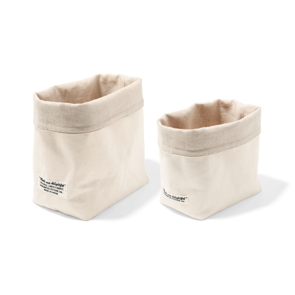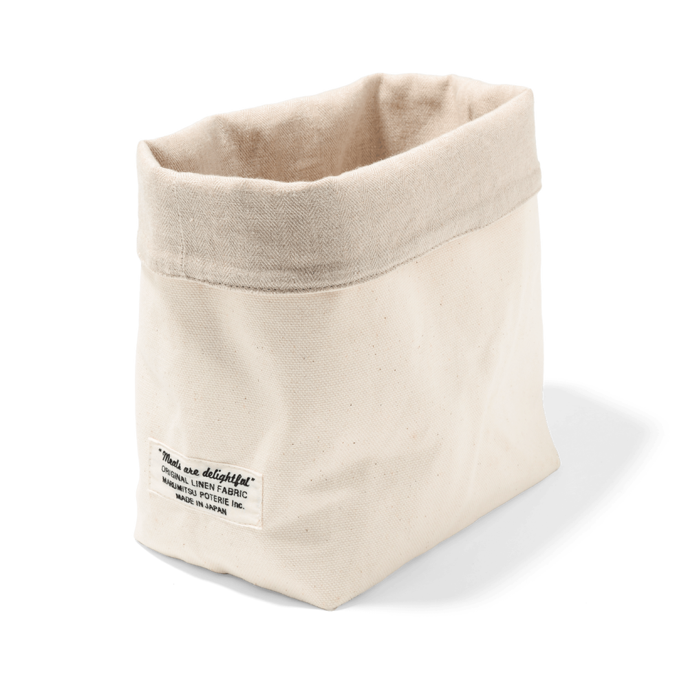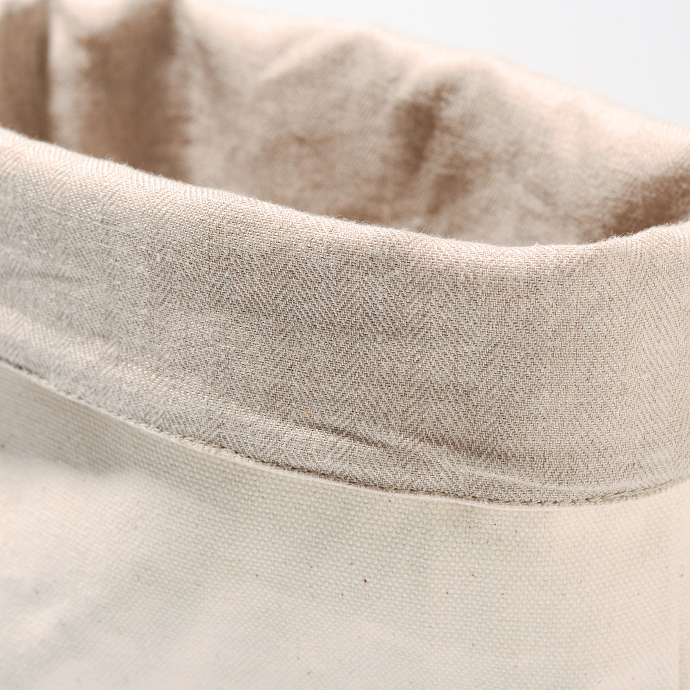 以厚實帆布搭配溫潤亞麻內裡製成,能幫烤過或加熱過麵包保溫,讓香氣更持久。可依需求折疊調整高度,耐洗可重複使用,並有兩種尺寸選擇,無論收納食材、小物,或是帶去麵包店裝下剛買的幸福,都讓日常多一點溫柔與詩意。