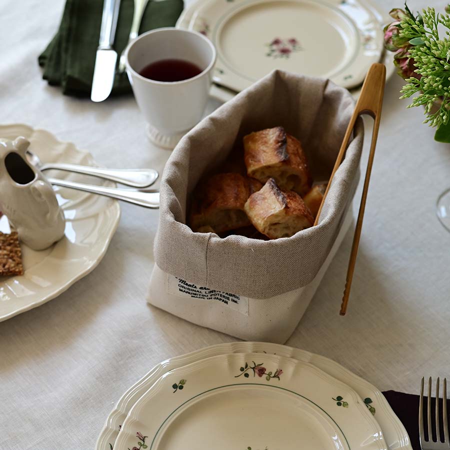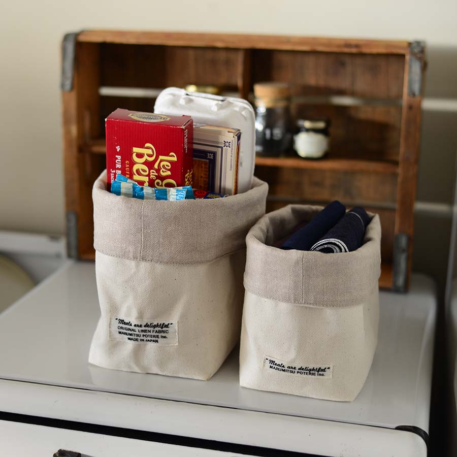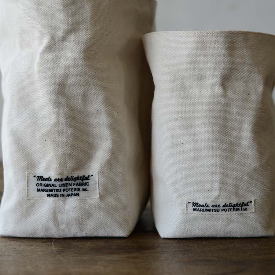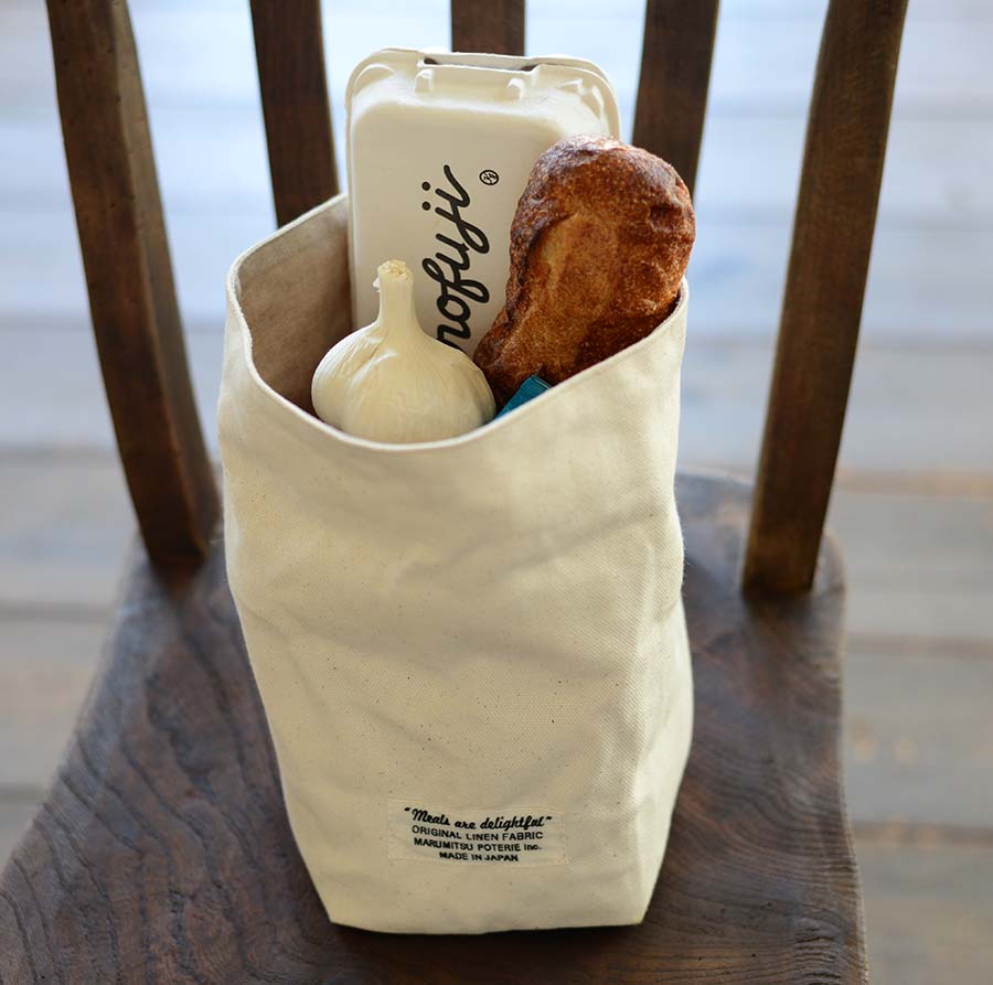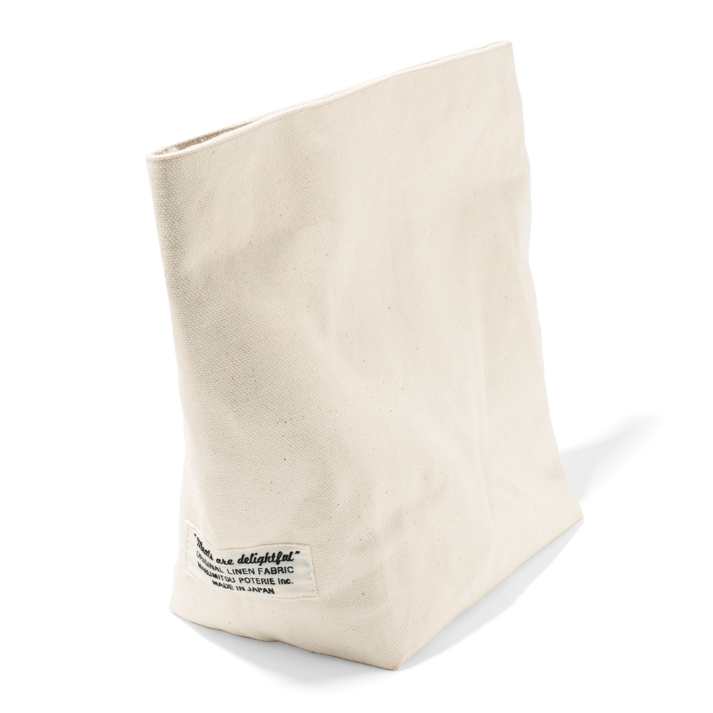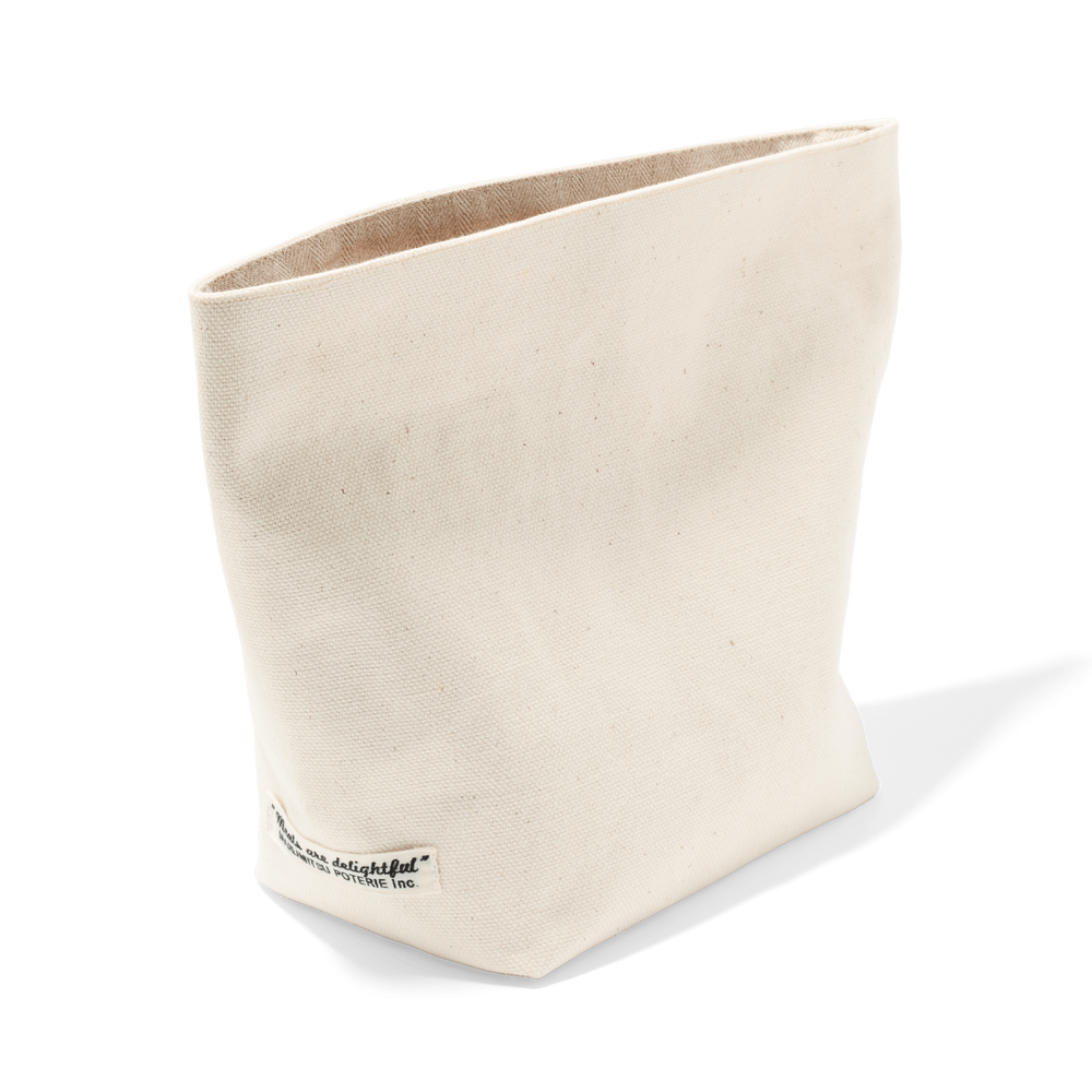 以厚實帆布搭配溫潤亞麻內裡製成,能幫烤過或加熱過麵包保溫,讓香氣更持久。可依需求折疊調整高度,耐洗可重複使用,並有兩種尺寸選擇,無論收納食材、小物,或是帶去麵包店裝下剛買的幸福,都讓日常多一點溫柔與詩意。