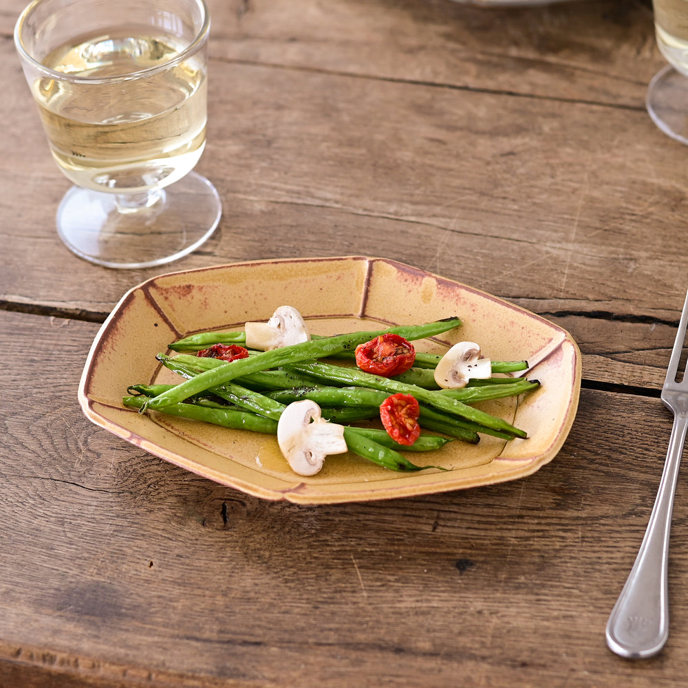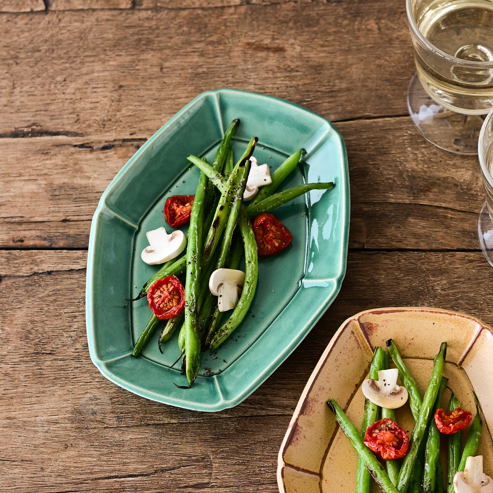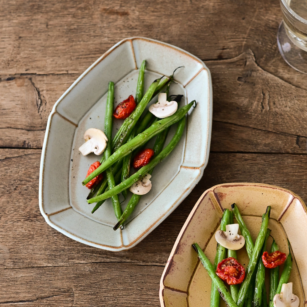 Crafted from white clay, this plate features gentle asymmetrical lines and refined colors, embodying a minimalist aesthetic with a touch of warmth. Available in three finishes—matte ecru, camel, and a vibrant, elegant turquoise—it brings versatility to the dining table. The medium size is perfect for dishes like tamagoyaki or grilled vegetables, while its slightly deep form makes it suitable for meals with sauces. Blending seamlessly into both everyday dining and special gatherings, it adds a graceful and sophisticated touch to any setting.