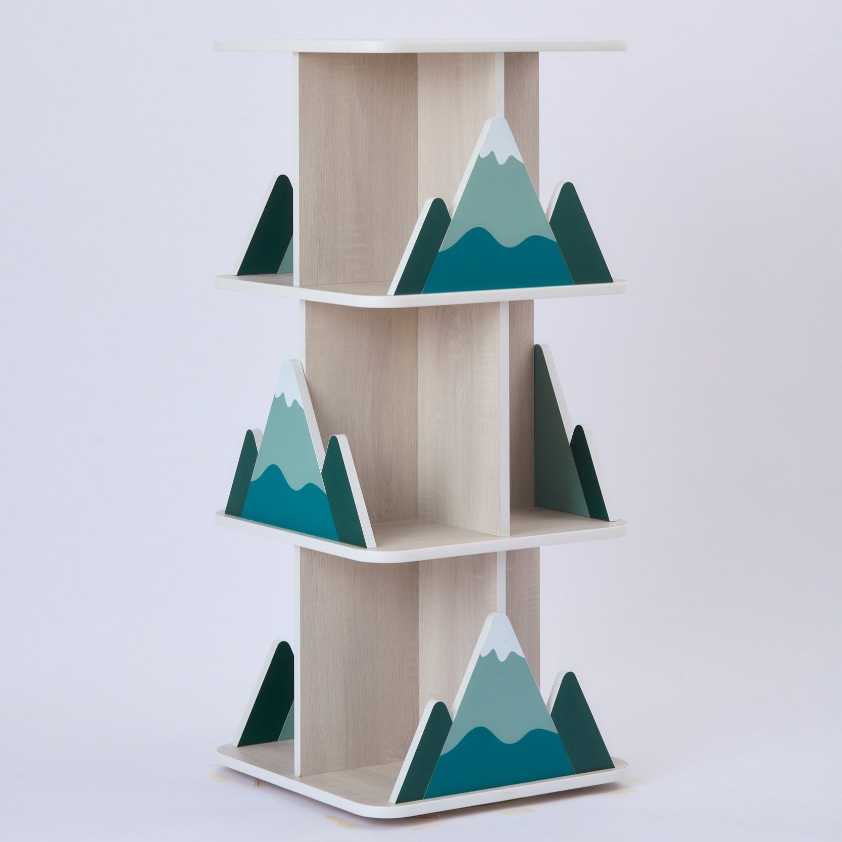 Each shelf features charming Mountain-shaped panels that make storage both functional and decorative. The scratch-resistant wood-textured finish is specially treated with a rough-touch surface—tough enough to handle curious little hands without showing wear.