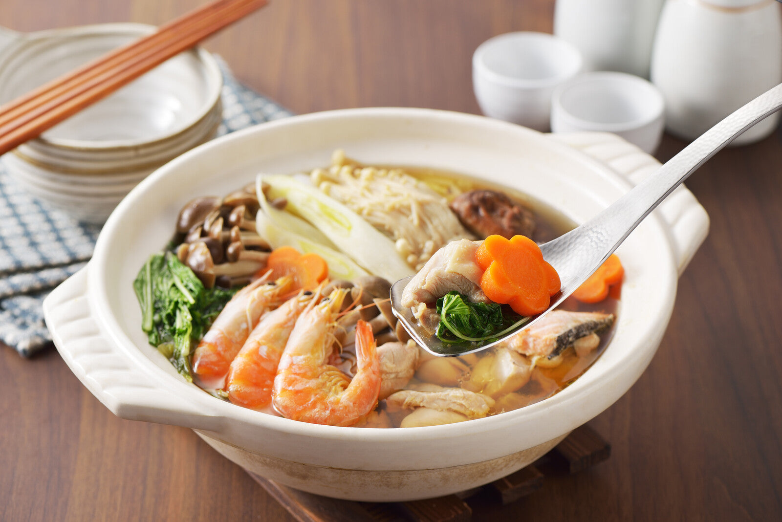 以精緻鎚目工藝打造,外型簡約卻富有質感,18-8 不鏽鋼材質耐腐蝕、不易生鏽,清洗方便,兼具實用與美觀。共有無孔與帶孔兩款,適用於火鍋、湯品或各式料理分食使用,是每日餐桌上的優雅幫手。