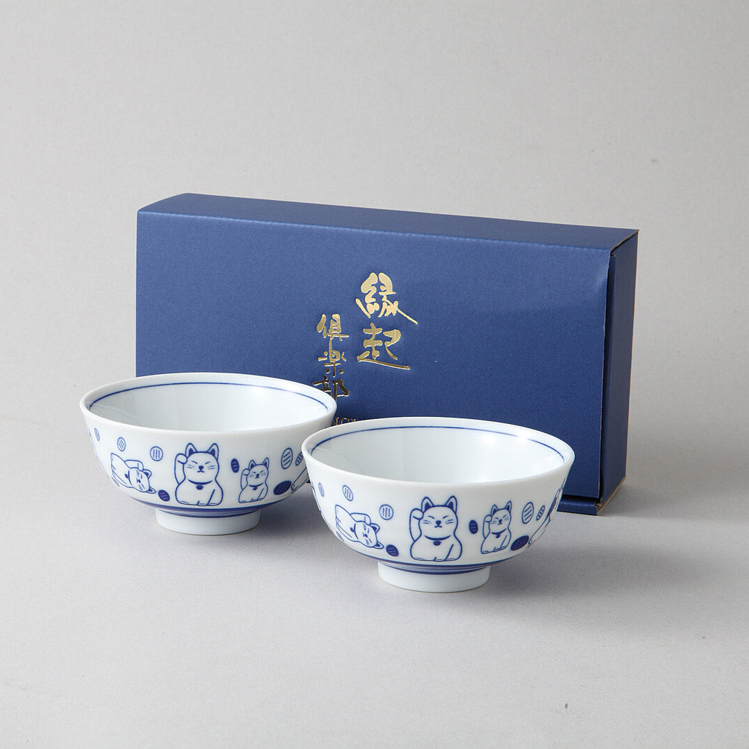 This charming set features the iconic Lucky Cat motif combined with traditional Japanese indigo dye-inspired patterns, offering a delightful blend of cuteness and cultural elegance. The versatile bowl shape is perfect for rice, soup, or desserts in everyday use. Packaged in a refined gift box, it makes a thoughtful present for weddings, celebrations, or anyone in need of a little extra luck and charm in their daily life.