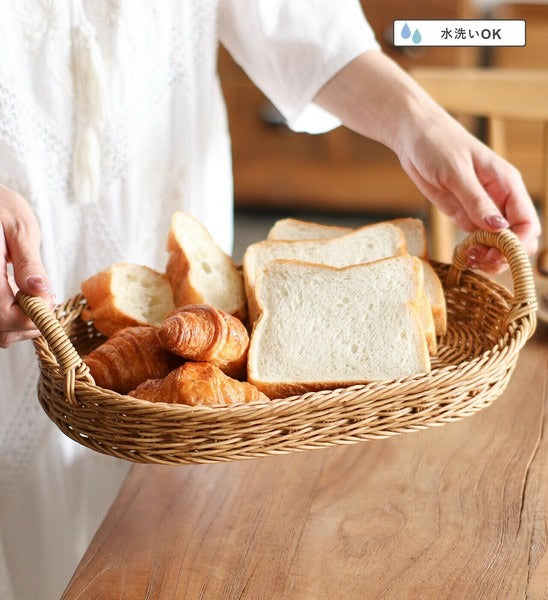 Made from water-resistant material, this basket features a texture that mimics natural fibers, bringing a warm and organic feel to your space. Its oval shape is perfect for serving bread, snacks, or drinks during breakfast or tea time. It also works beautifully as a storage tray for small items, adding a charming touch to any corner of your home. A perfect blend of functionality and aesthetics, this basket is both practical and stylish.