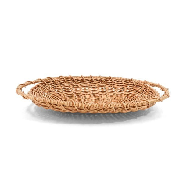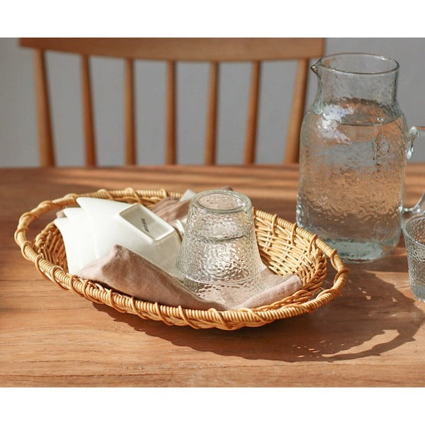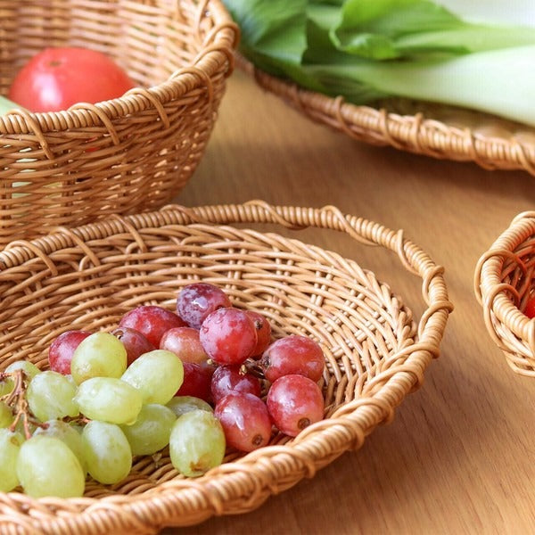 This oval-shaped colander basket features convenient handles for easy rinsing and carrying. Perfect for draining vegetables, fruits, or noodles—and serving them directly at the table. Made from durable woven resin, it’s free of splinters, combining safety with visual charm. Its natural, minimalist style blends seamlessly into any kitchen or dining setting, making it a practical yet beautiful companion for everyday use.