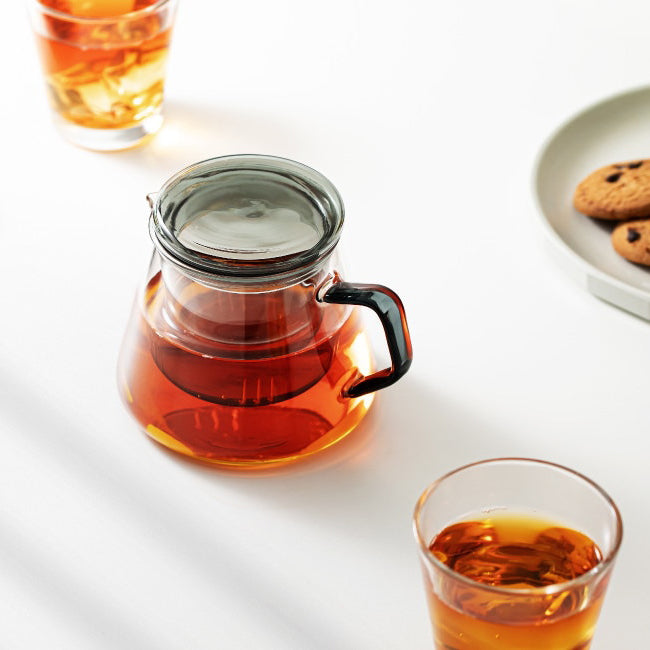 Breaking away from the traditional sweet image of teaware, this teapot features a sleek gray design that adds a cool, stylish touch to your tea time at home. The built-in infuser is also made of glass, eliminating the hassle of cleaning metal mesh and making rinsing quick and easy. Dishwasher- and microwave-safe, it allows for effortless reheating and cleaning. Whether for a daily cup or an afternoon tea gathering with friends, it’s a practical yet elegant choice for any tea lover.