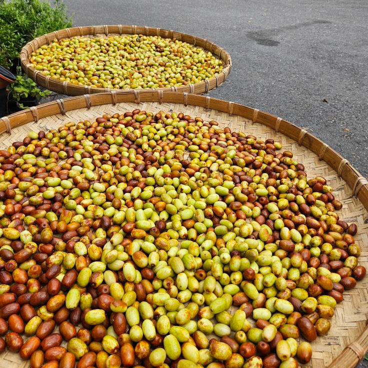 台灣自家農場栽種,採自然農法、農藥 0 檢出、無薰硫處理,安心又純淨。紅棗採收後,先清洗乾淨並曬乾,接著使用 55℃ 低溫烘焙除去水分,再以 60℃ 持續烘約 4 小時,完整保存果實原味與營養,每一顆紅棗都飽滿甘甜,是茶飲、養生甜品或日常零嘴的理想選擇。