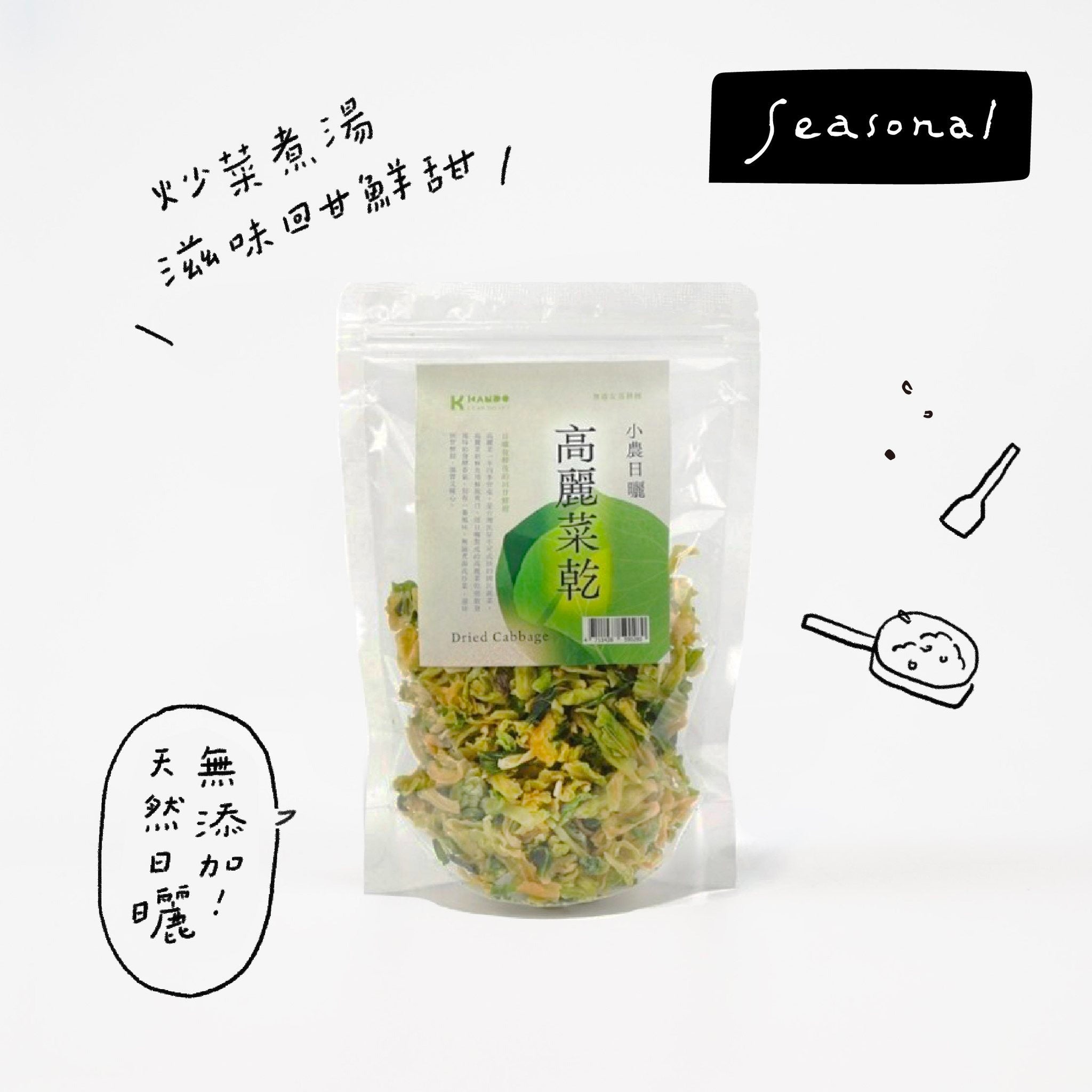 一年四季盛產的高麗菜,是台灣餐桌上的國民蔬菜。將新鮮時蔬經日曬發酵,擁有獨特香氣與層次風味的高麗菜乾,無論煮湯、炒菜,都能品嚐到回甘鮮甜的滋味,登山、露營時亦能輕鬆攜帶,隨時享受大自然中最樸實又療癒的好味道。