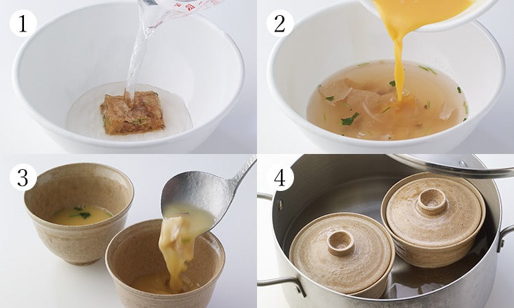採用茅乃舍高湯打造,能帶出鰹魚的鮮美與蛋的嫩滑,完美呈現黃金比例的上品口感。只需一顆蛋與 200ml 溫水,混合調味包後蒸煮即可,省去熬高湯的繁瑣,愛吃茶碗蒸的你必須試試!