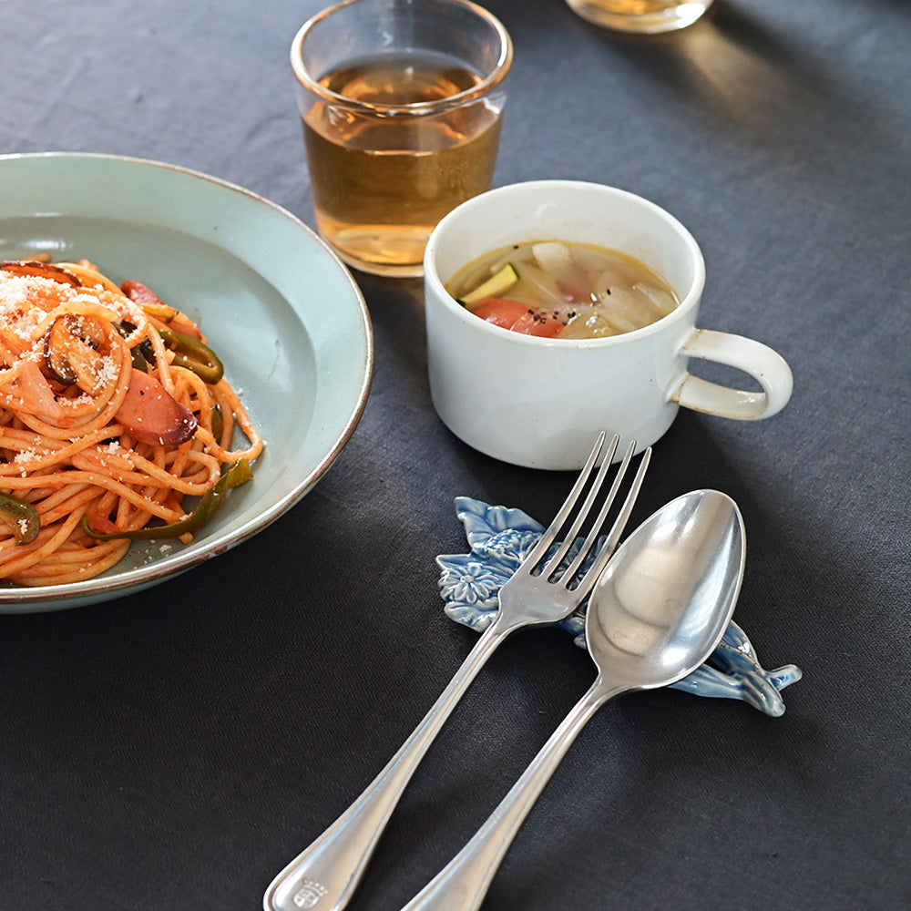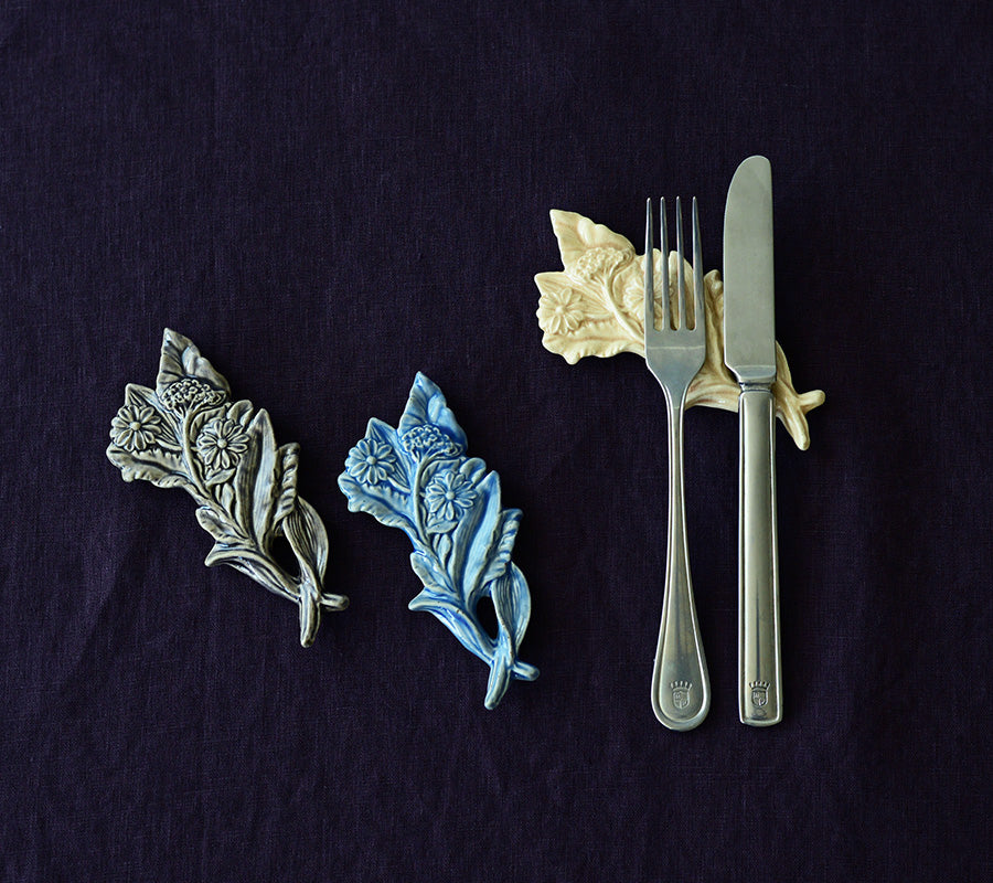 Inspired by the French culinary herb bouquet, this cutlery rest transforms the overlapping forms of herbs into an elegant table accessory. The delicate relief captures the rhythm and vitality of leaves, as if flowers and foliage were dancing gracefully across the table. Its practical width accommodates chopsticks, spoons, or knives with ease, bringing both order and beauty to mealtimes. Beyond functionality, it adds a touch of poetry and a sense of the seasons to everyday dining, elevating the table with subtle elegance and natural charm.