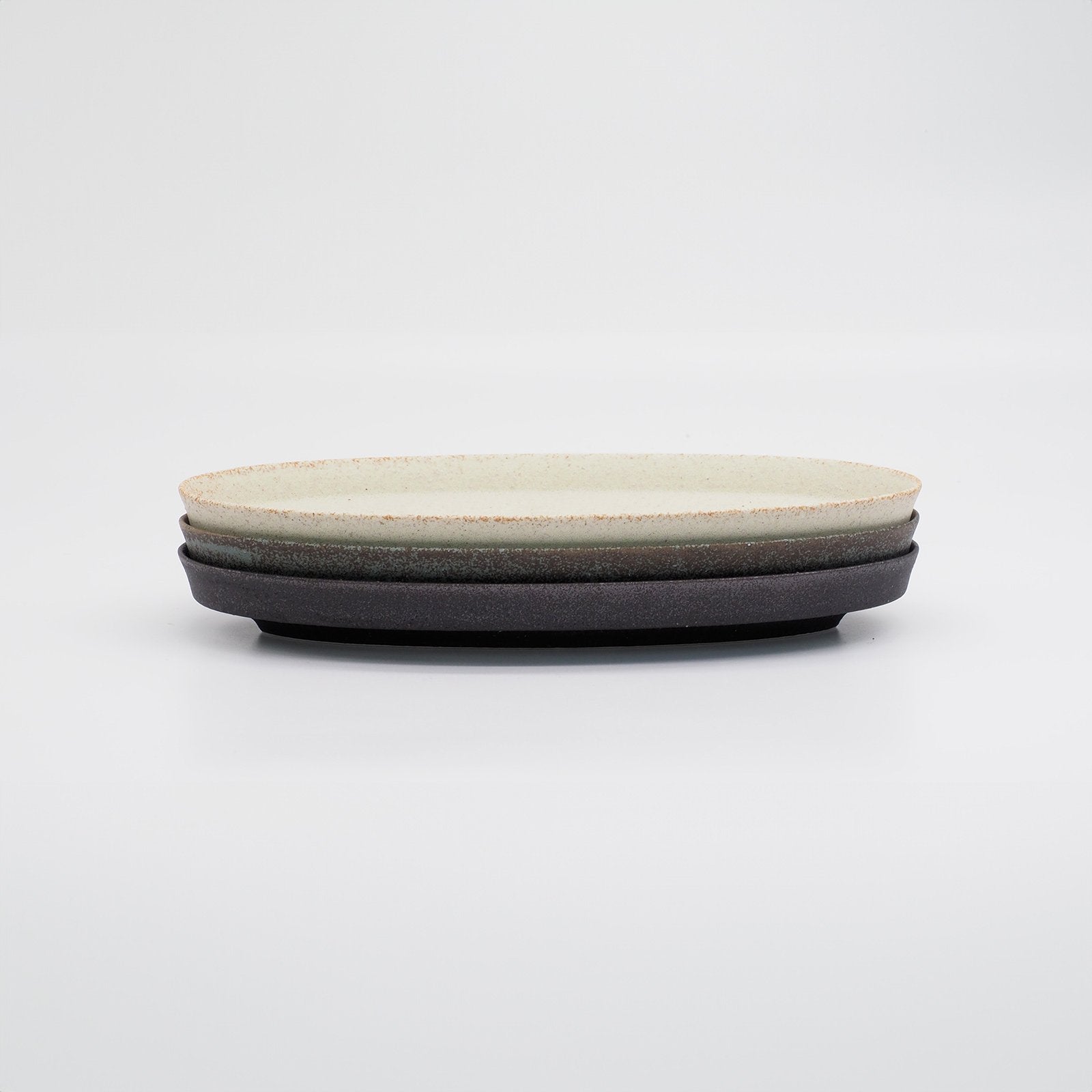 以微微內凹的底部打造獨特形狀,只要順著凹面放置食材,擺盤便自然成形,呈現令人食指大動的美味畫面。挺立的盤緣線條與略帶粗感的霧面質地,散發沉穩氣質,更能凸顯料理的色澤與層次。無論是家常小菜或甜點小點,都能輕鬆排列、優雅上桌。