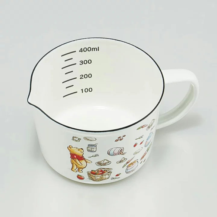 This enamel measuring cup features excellent resistance to acids, alkalis, and corrosion, ensuring it won't react with ingredients or alter flavors. Its smooth surface resists staining and is easy to clean. With clearly marked measurements inside, it’s perfect for accurately measuring both liquids and dry ingredients. Ideal for everyday cooking and baking—and best of all, adorable characters like Winnie the Pooh and Hello Kitty make every kitchen moment even more fun and delightful!