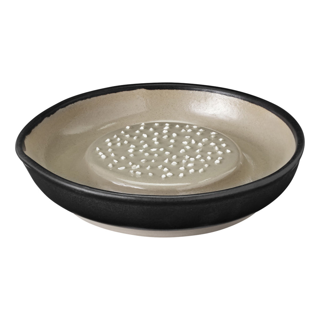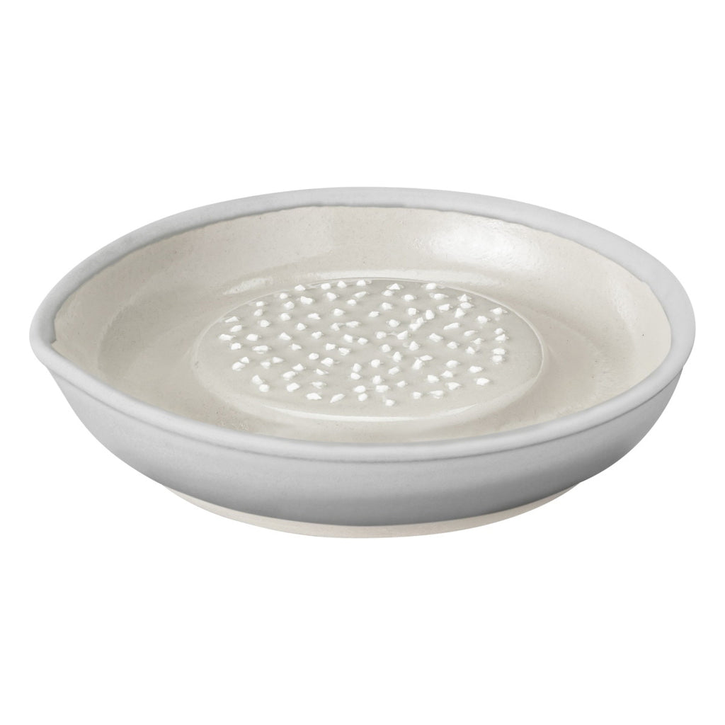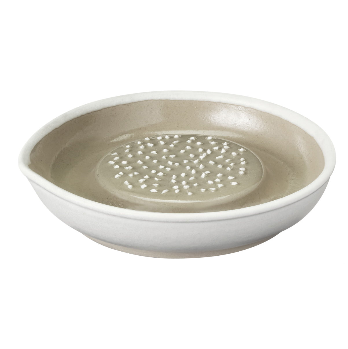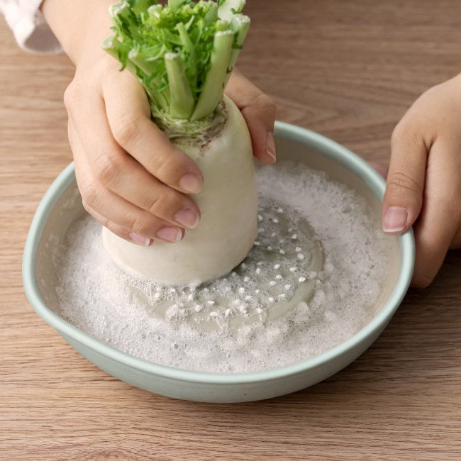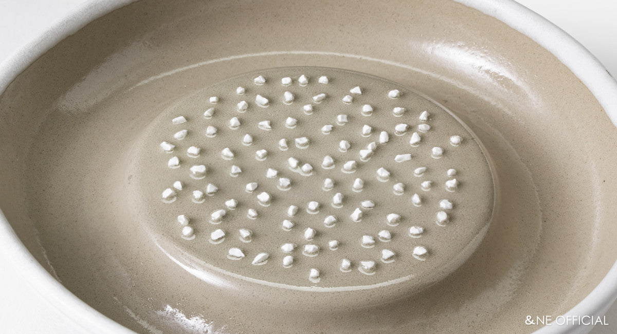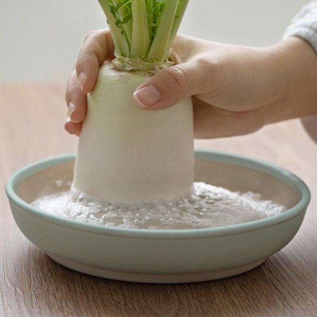 Developed by Motoju Seitosho, a specialist in mortars and graters, this ceramic grater features sharp ceramic blades that effortlessly handle tough, bulky ingredients such as daikon radish and onions. Its easy-to-clean design allows food fibers to be rinsed off with just water, while the silicone base ensures stability during use and protects your table surface. A practical yet elegant kitchen tool, it combines functionality with refined craftsmanship.