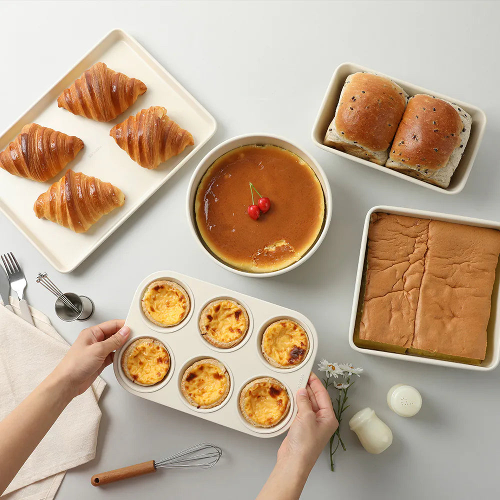 Crafted with premium aluminum alloy for fast, even heat distribution, FIKA bakeware is perfect for baking and steaming a variety of dishes. The non-stick ceramic coating is free from PFAS and heavy metals—safe, non-toxic, and healthier for everyday use. Easy release and effortless cleanup save you time and effort, while multiple stylish designs make it ideal for beginners and pros alike. Enjoy the joy of baking with confidence!