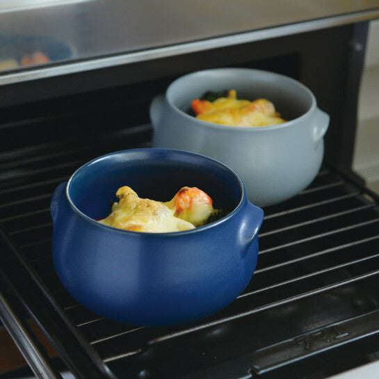 Featuring a minimalist and elegant design in ivory and blue-gray, this bowl is flame-safe and can go straight from the stove or grill to the table. Serve hot, fresh dishes without changing bowls, making cooking effortless and safe, while adding a touch of style to every meal.