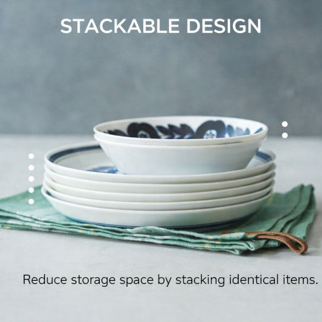 Crafted from authentic Japanese Mino ware, this charming porcelain bowl features a slightly matte texture adorned with rich blue floral motifs that beautifully elevate any dish. Its lightweight and thoughtfully stackable design makes it an absolute joy to use, bringing both practical convenience and a sophisticated artistic touch to your daily meals.