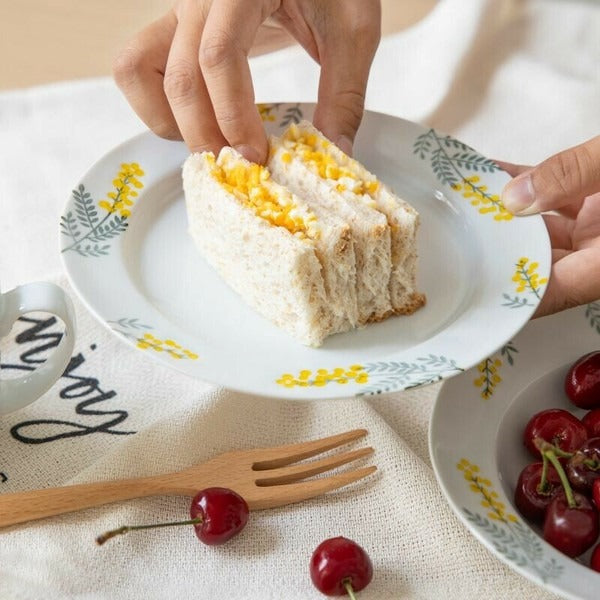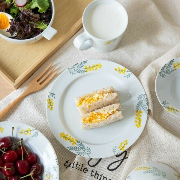 Featuring a bright yellow mimosa pattern as its highlight, this plate is perfectly sized with a tiered edge design that makes it easy to hold a variety of dishes. Suitable for Japanese, Western, or Chinese cuisine, it’s a versatile and practical addition to any home. Having a few on hand allows for flexible use and adds a charming touch to your dining table!