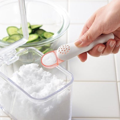 小巧勺子一次就能舀約一小匙(6g),只倒出所需份量,輕鬆控制用鹽。細鹽、粗鹽都能均勻撒開,煮魚、調味或去腥都好用。衛生設計不用直接碰鹽,體積小巧好收納,上蓋可拆洗,單手就能操作,剩下的鹽還能倒回去不浪費,讓烹飪更輕鬆整潔。