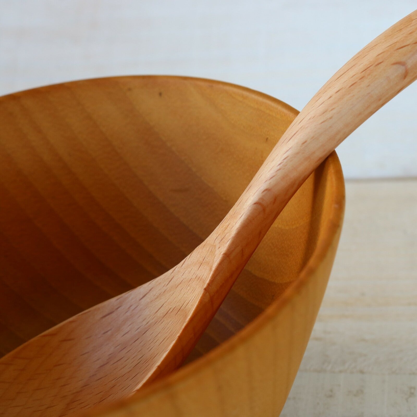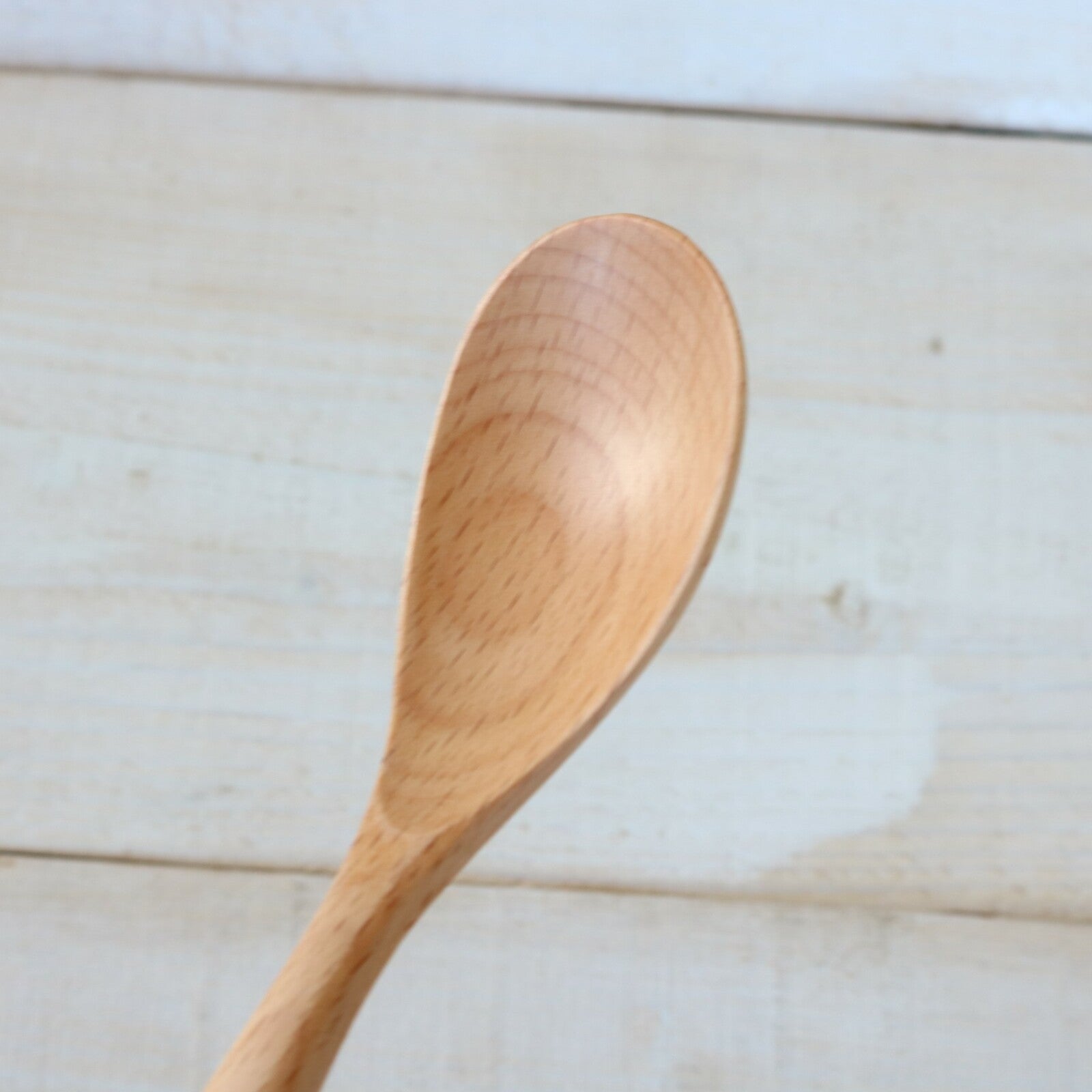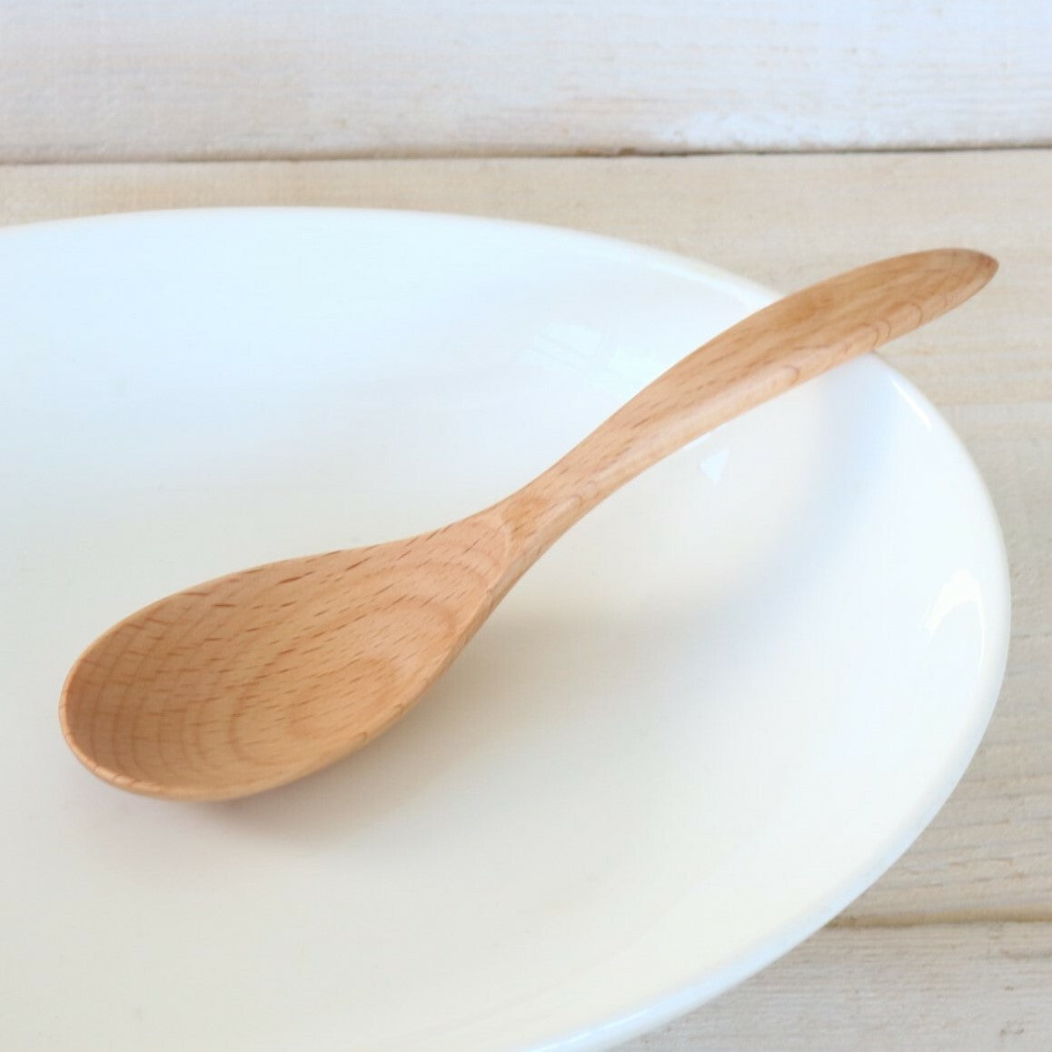 Crafted from natural beech wood, this spoon features a warm, beautiful grain that brings a gentle, natural feel to everyday dining. Durable and water-resistant, its smooth surface becomes more comfortable with use over time. The softly curved shape is ideal for soups, risotto, curry, and a variety of dishes. Gentle on ceramic tableware, it produces no clattering sounds, creating a calm and cozy mealtime atmosphere.