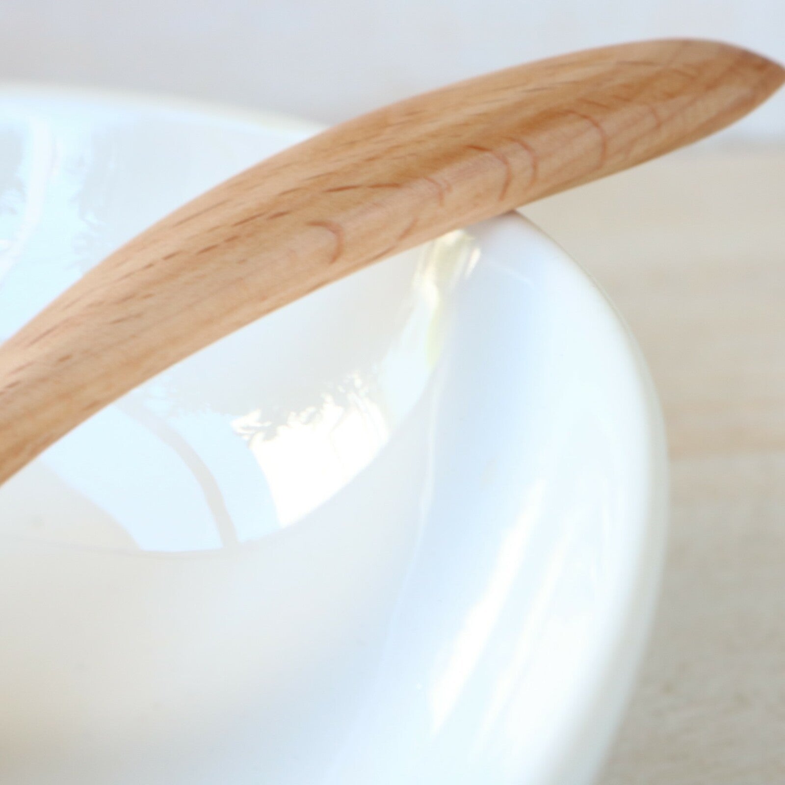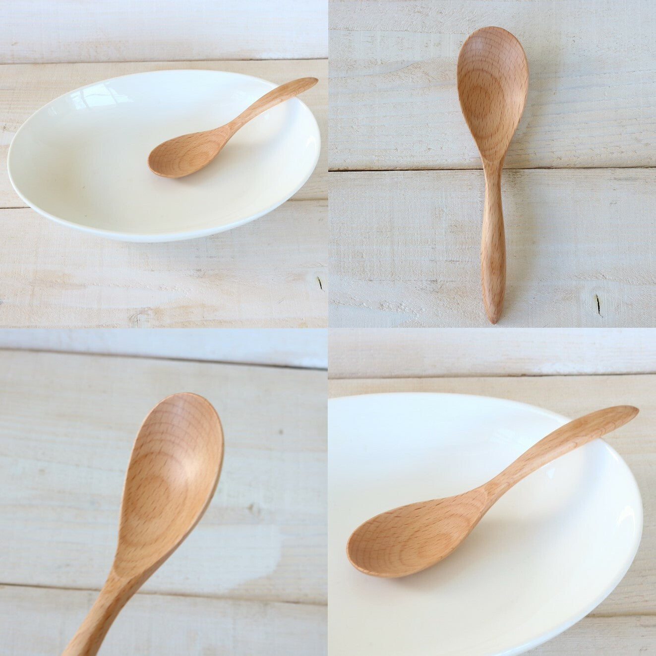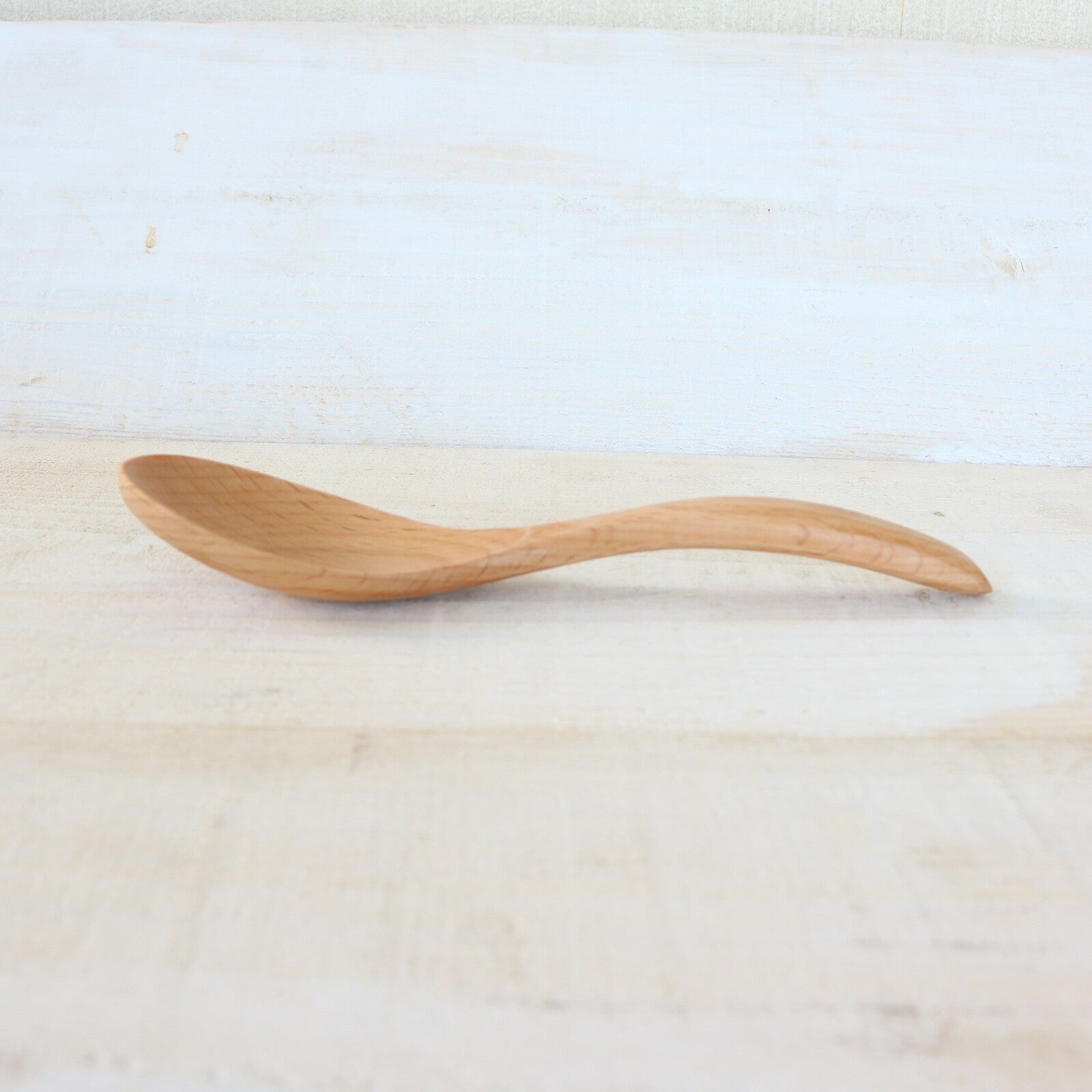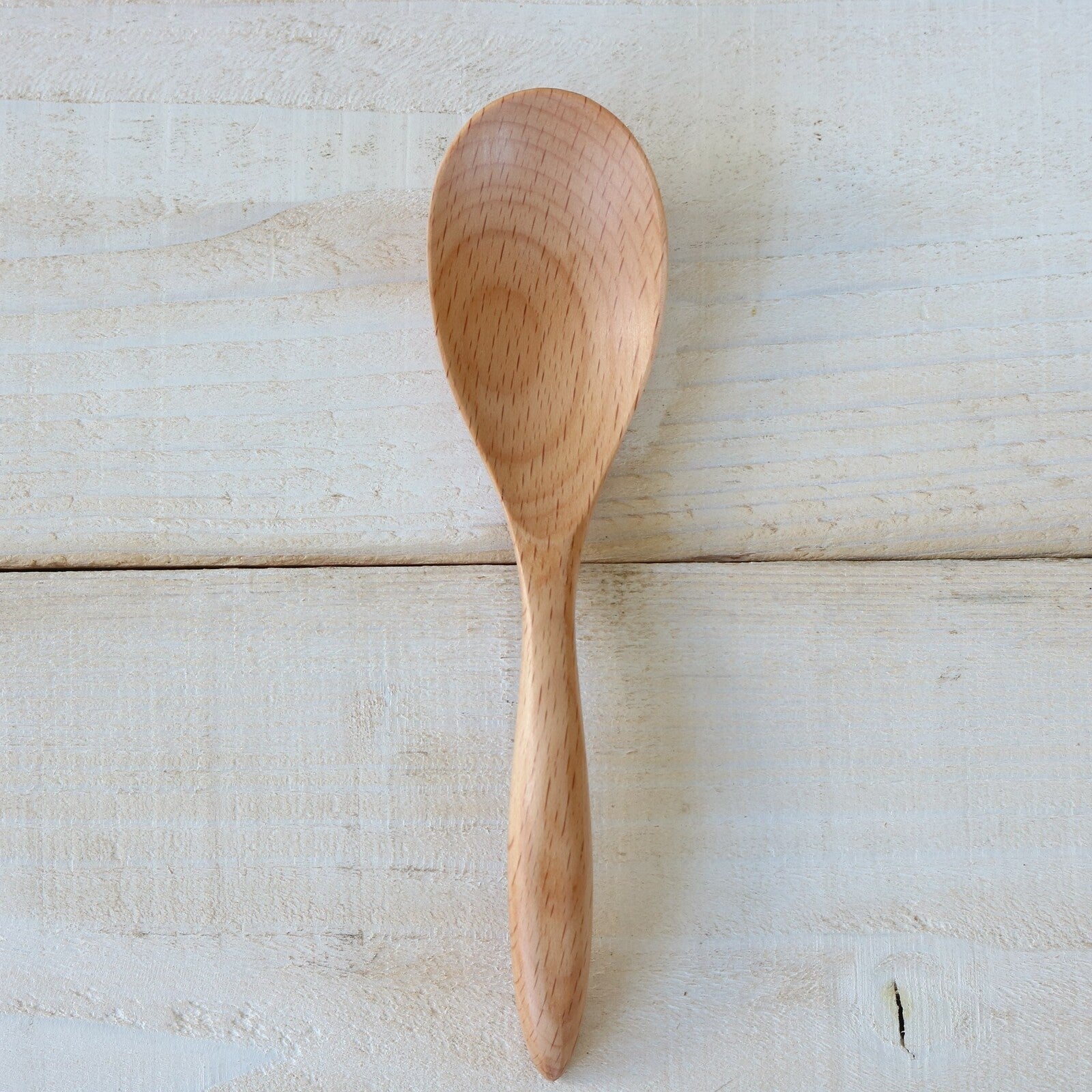 Crafted from natural beech wood, this spoon features a warm, beautiful grain that brings a gentle, natural feel to everyday dining. Durable and water-resistant, its smooth surface becomes more comfortable with use over time. The softly curved shape is ideal for soups, risotto, curry, and a variety of dishes. Gentle on ceramic tableware, it produces no clattering sounds, creating a calm and cozy mealtime atmosphere.