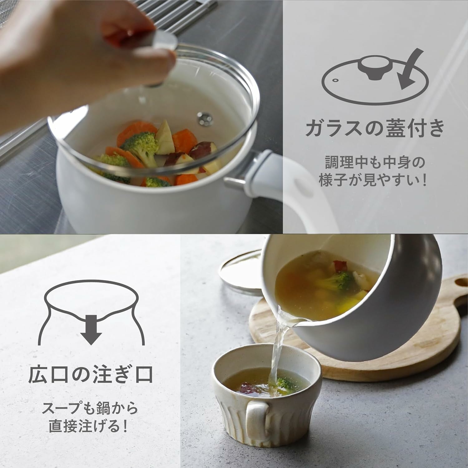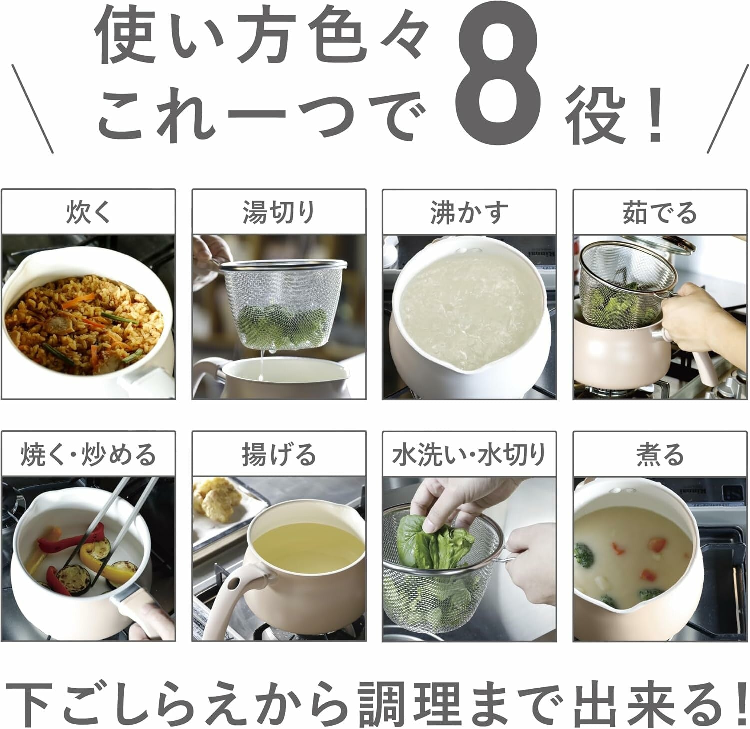This versatile pot comes with a dedicated strainer and a glass lid, allowing you to wash vegetables, drain water, blanch, boil, strain soups, sauté, fry, and even cook rice—all with a single pot. The interior features a high-quality ceramic coating that repels water and oil, making it non-stick and easy to clean. Perfect for 1–3 servings, it’s an ideal choice for small households, singles, or anyone with limited kitchen space.