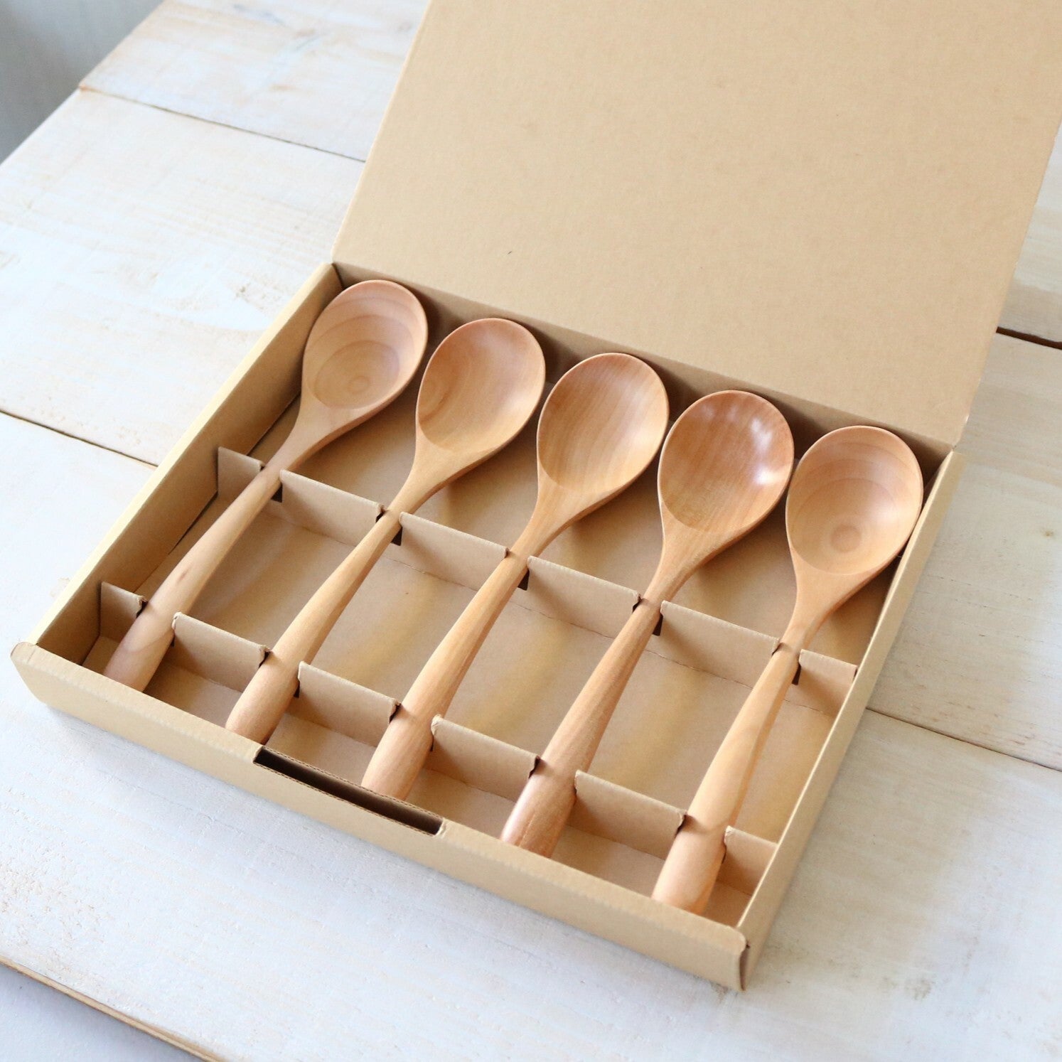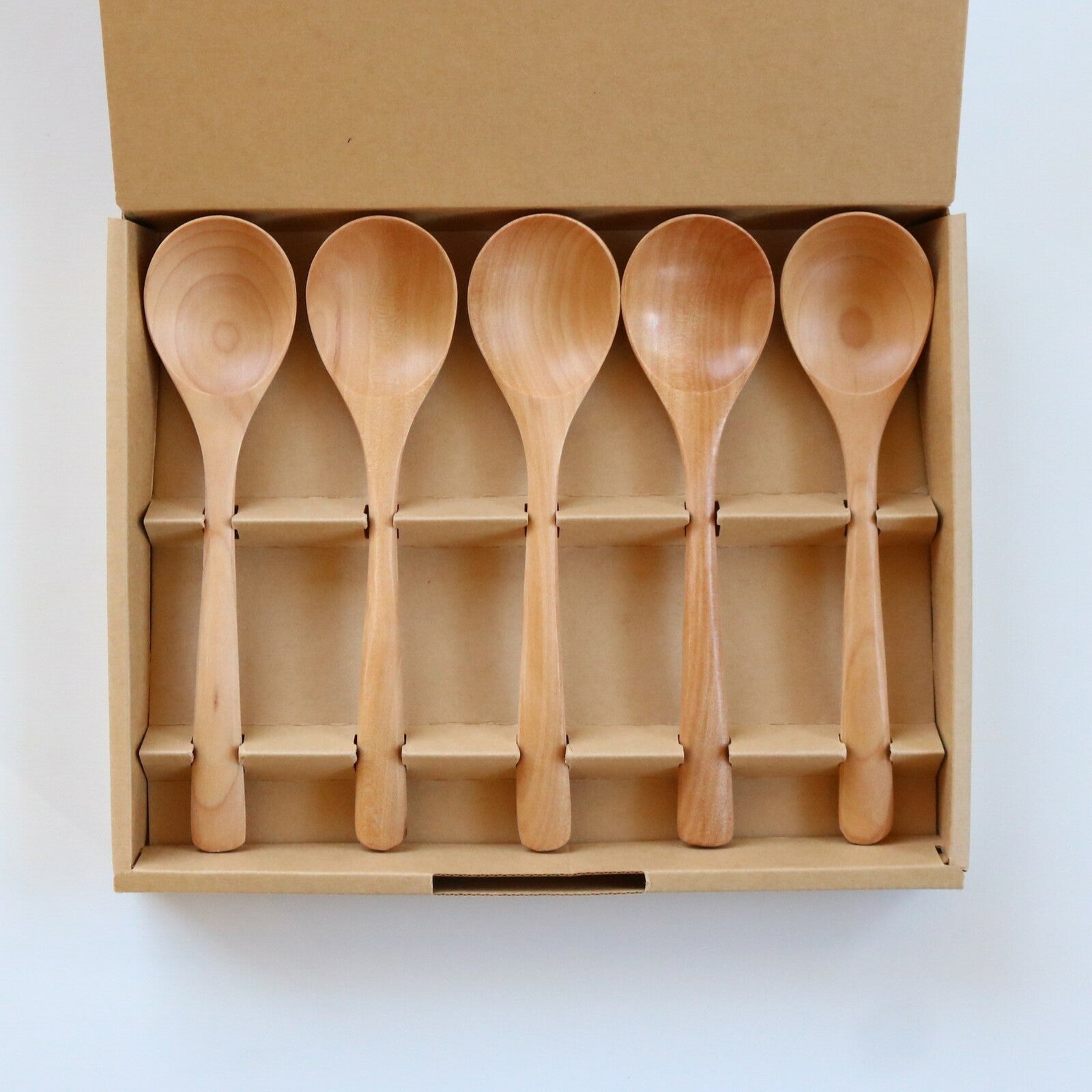 Presented in a soft natural white tone, this set features smooth, rounded handles that feel comfortable and easy to use. It includes five wooden spoons neatly packed in a gift box, making it a tasteful and thoughtful present. Simple and versatile in style, the spoons are perfect for everyday meals or entertaining guests. An ideal gift for school entry, new beginnings, or festive occasions.