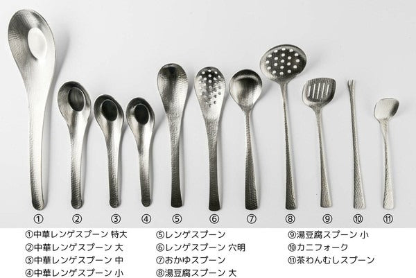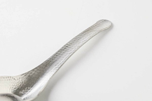 Designed by Sato Metal Industries, this spoon showcases the refined beauty of hammered textures, reflecting the handcrafted artistry of Japanese craftsmanship. While it pairs perfectly with traditional Japanese cuisine, it effortlessly complements Western dishes, adding a unique fusion charm. With a sturdy and well-balanced design, it is ideal for enjoying soups, porridges, or Chinese dishes, making it an elegant choice that combines practicality and aesthetic appeal for your table setting!