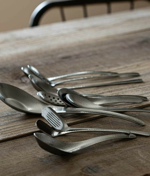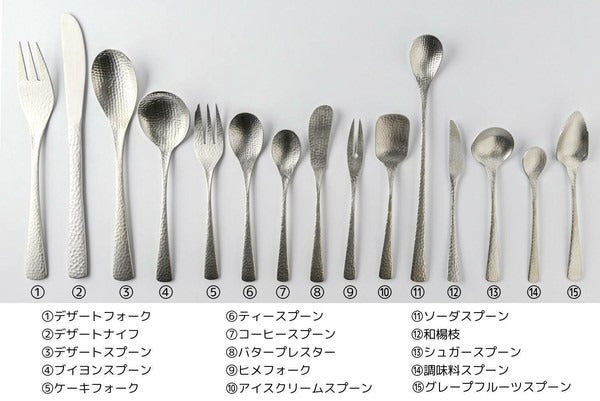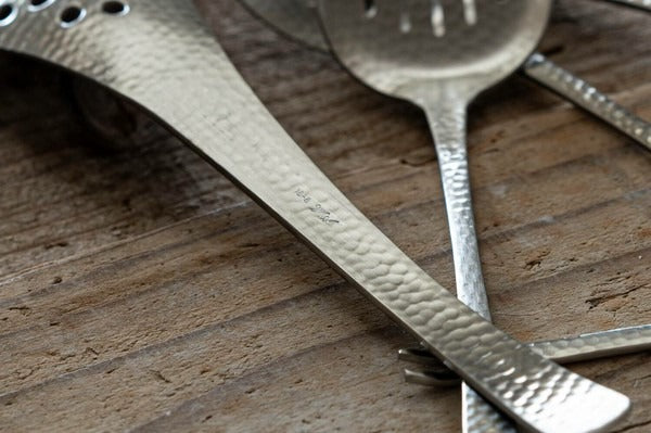 由佐藤金屬興業設計,以槌目紋理的細緻美感,重現日本職人手作風格。除了適合搭配和風料理,也能輕鬆融入西式餐點,展現獨特的混搭魅力。湯匙手感穩重,適合用於品味湯品、粥品或中華料理,是餐桌上兼具實用與美感的優雅選擇!
