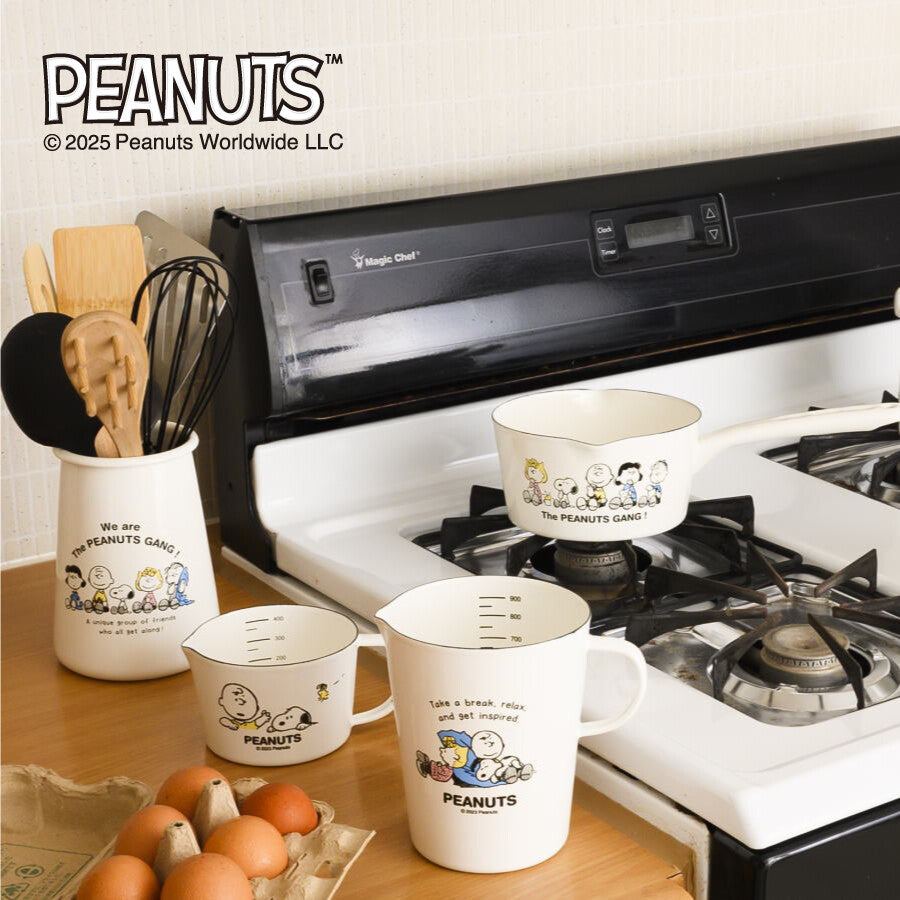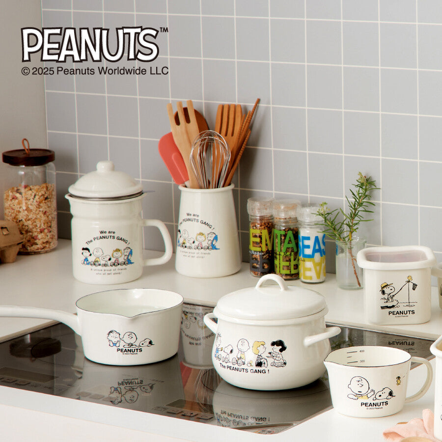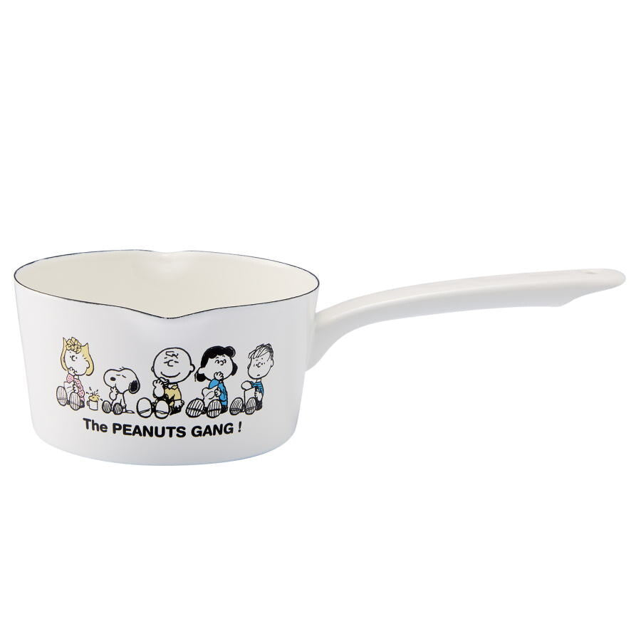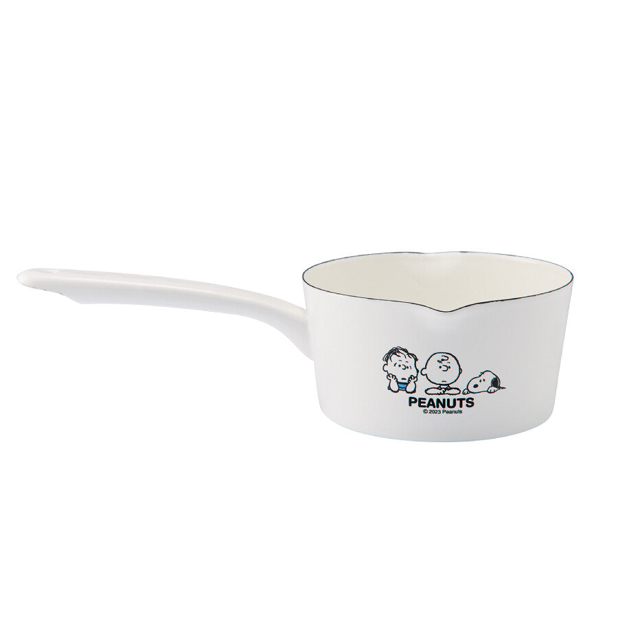 Carefully handcrafted by artisans in Tsubame, Niigata, this enamel pan features gentle and adorable Snoopy illustrations that bring a touch of comfort to your kitchen time. The dual-spout design allows easy pouring for both left- and right-handed use. Made of high-quality enamel, it resists staining and retains heat well—perfect for warming milk, preparing miso soup, making sauces, jam, or baby food.