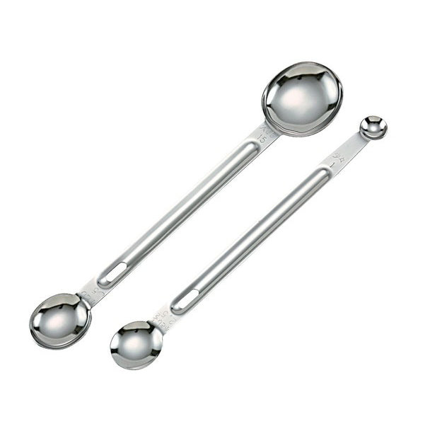 This two-piece set includes 1 cc (a pinch), 2.55 cc (½ tsp), 5 cc (1 tsp), and 15 cc (1 tbsp), making it easy to measure both small seasonings and larger ingredients with precision. The long-handle design allows effortless scooping from deep jars without touching the bottom. Made from durable stainless steel, these spoons are easy to clean, rust-resistant, and combine practicality with sleek design—making every cooking and baking task more precise, convenient, and enjoyable.