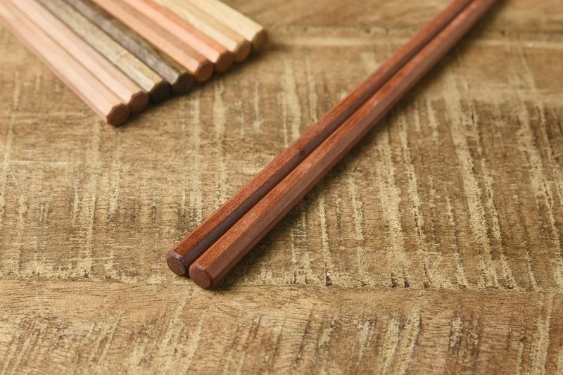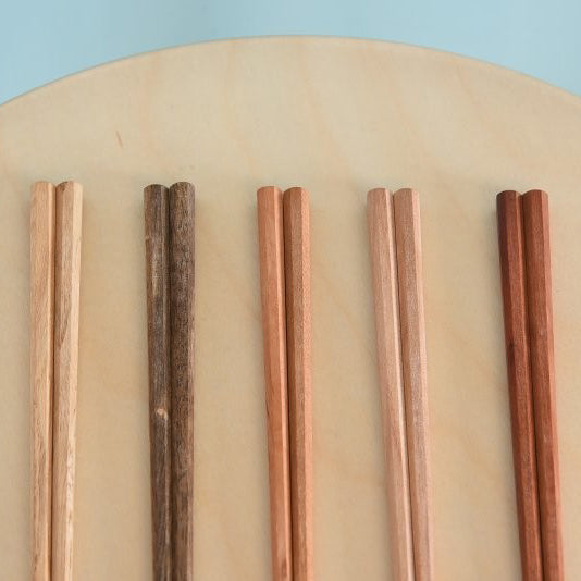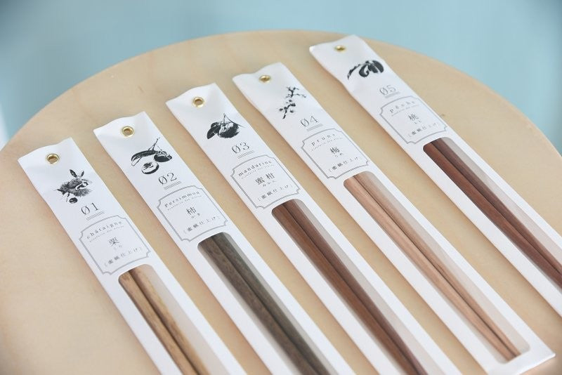 以栗子、柿子、蜜柑、梅子、桃子、橄欖等果樹木材製作,並使用純度 100% 高品質蜜蠟精心塗飾,呈現天然木的溫潤質感。筷身保留木材自然紋理與色澤,每一雙都有著獨特的手作感,增添使用時的視覺與觸感享受,是兼具實用與美感的餐桌逸品。