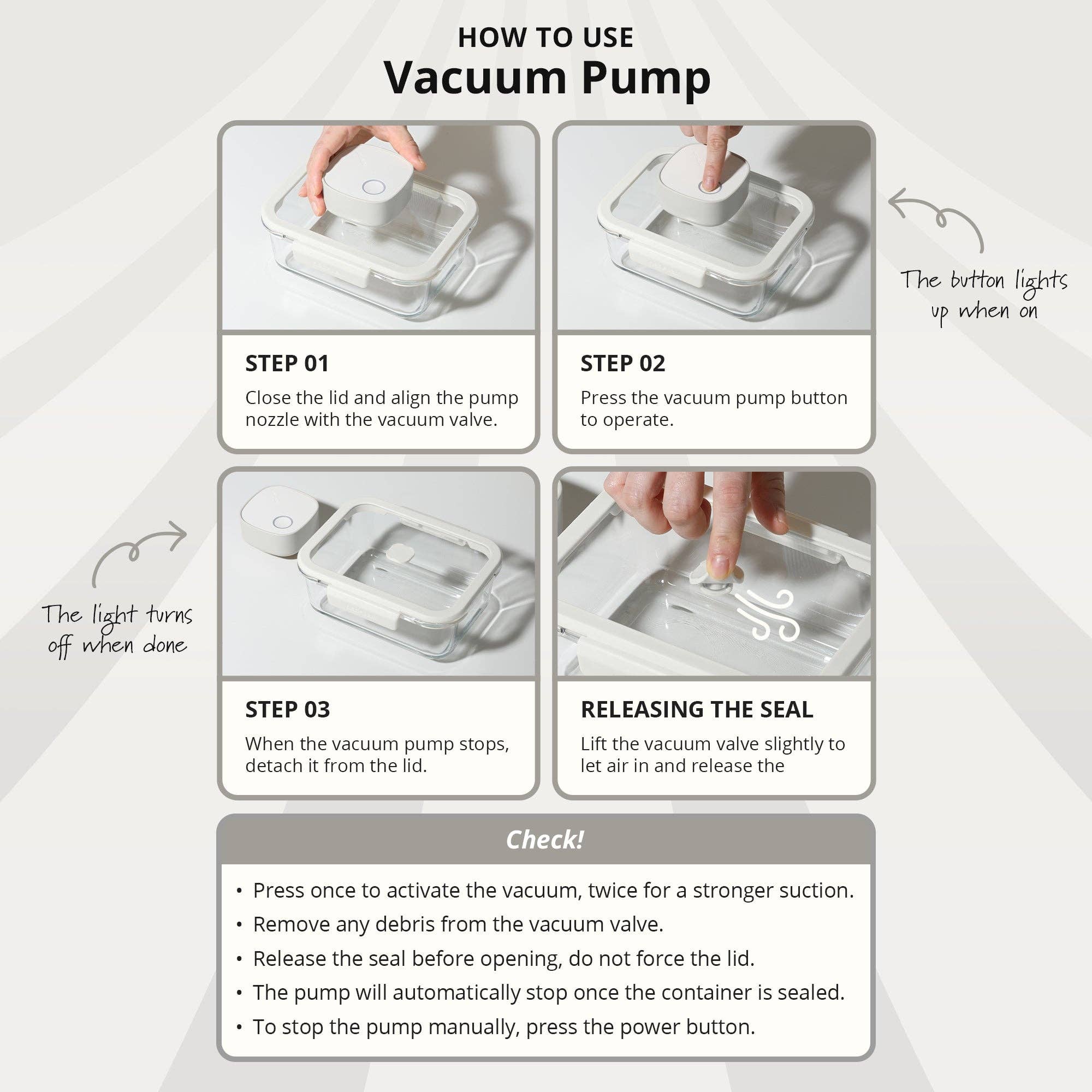 Vacu Seal 採用創新玻璃上蓋真空技術,可延長食物鮮度最高達 8 倍!耐用的硼硅玻璃盒身搭配強化玻璃蓋,防異味、耐熱且安全無毒。專利雙結構扣具搭配矽膠密封圈,快速完成氣密,自動真空幫浦免手動操作,盒體可堆疊、可收納,還具備微波排氣閥,讓保存、加熱、整理一次到位。