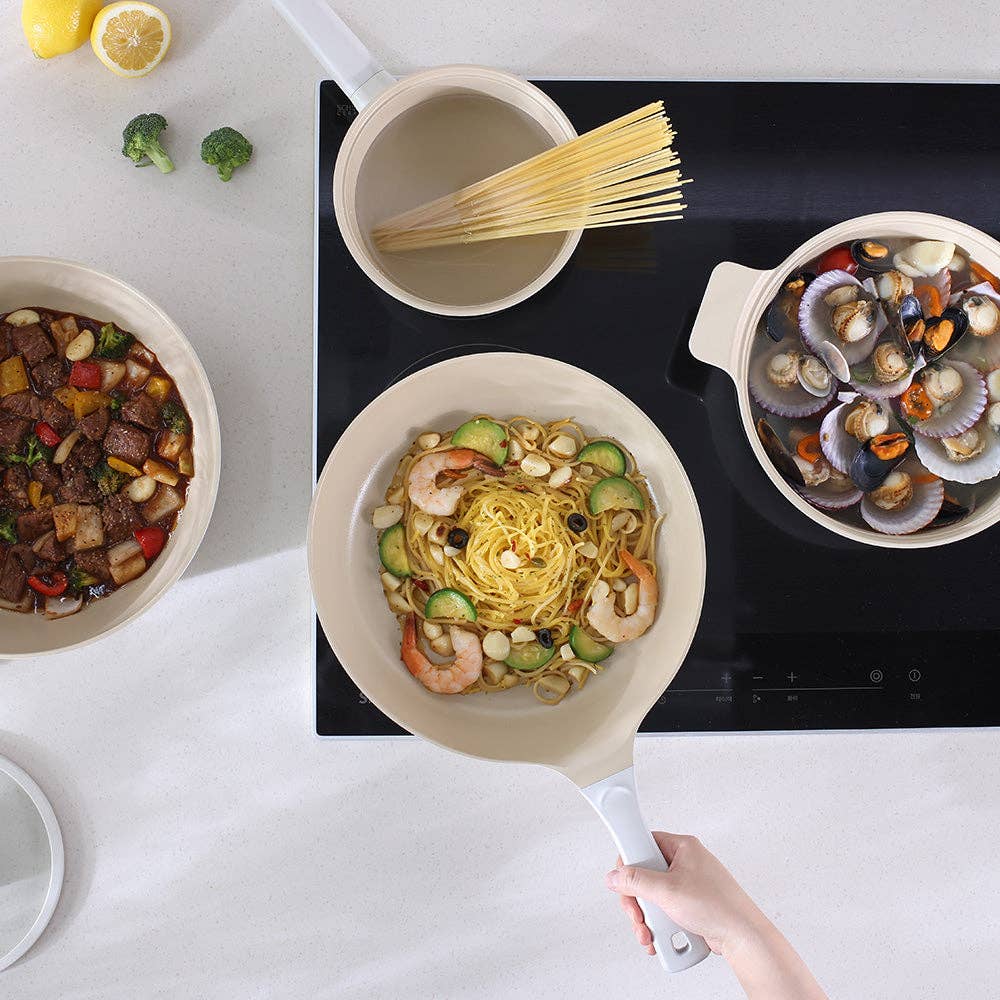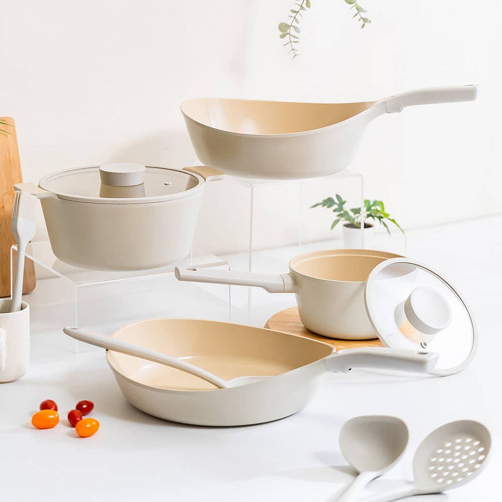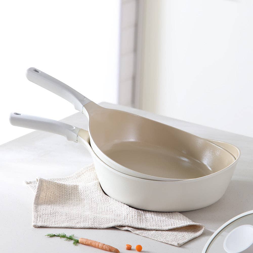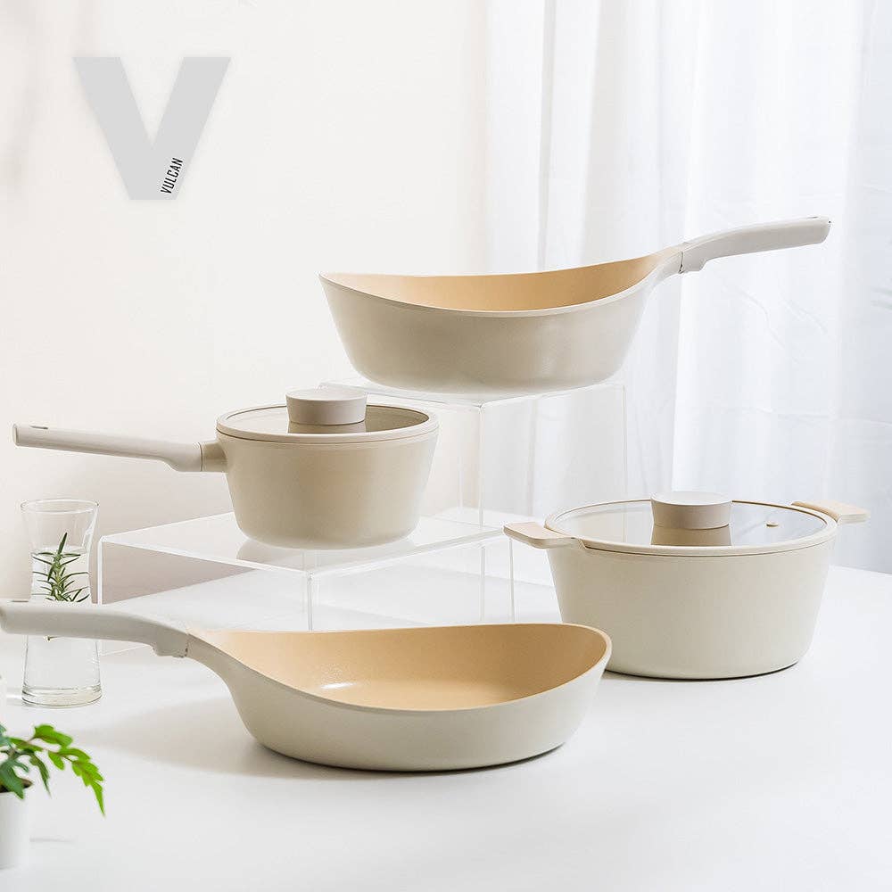 Inspired by the Greek god of fire, the Neoflam Vulcan Frypan combines durability, beauty, and eco-conscious design. Made from cast aluminum for fast, even heating, it’s lightweight, warp-resistant, and energy-efficient. The ceramic natural mineral coating—free from PFAS, PFOA, and heavy metals—ensures safe, non-toxic cooking and easy cleanup. Featuring a natural wood handle and silicone rim, this award-winning FIKA series pan is compatible with all stovetops and brings together Scandinavian-inspired aesthetics with Neoflam’s commitment to healthy, sustainable living.